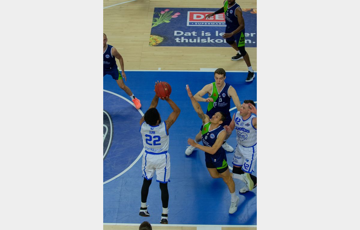 Twee dingen vielen wel op. Zo verdedigde Zorg en Zekerheid Leiden erg sterk. Landstede Hammers kwam niet verder dan een schotpercentage van 32,9%, waar de Leidse ploeg – met 16 schoten minder – 54,4% noteerde. De rebound was tot voor kort een minpuntje voor Zorg en Zekerheid Leiden. Daar was deze avond weinig van te merken. De Leidse ploeg plukte 46 rebounds van de borden, Landstede Hammers kwam niet verder dan 33 rebounds.