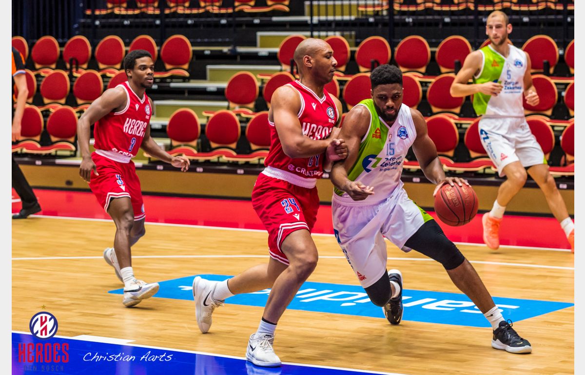 Dat het een lastig avondje kon worden in Den Bosch, bleek wel in de eerste aanval van Zorg en Zekerheid Leiden. Michael Finke, afgelopen zondag nog foutloos van achter de driepuntslijn, opende met een pudding. Toch herstelde de ploeg zich snel. Via scores van Worthy de Jong, Emmanuel Nzekwesi en Giddy Potts (5 punten) liep de Leidse formatie weg naar een 4-9 voorsprong. Mede door een zeer goed spelende DeMario Mayfield (26 punten) haakte Heroes, dat uiteraard aantrad zonder de geschorste Miha Lapornik, weer aan. Ondanks een driepunter van Nick King werd het eerste kwart afgesloten bij 19-16 in het voordeel van de thuisploeg.