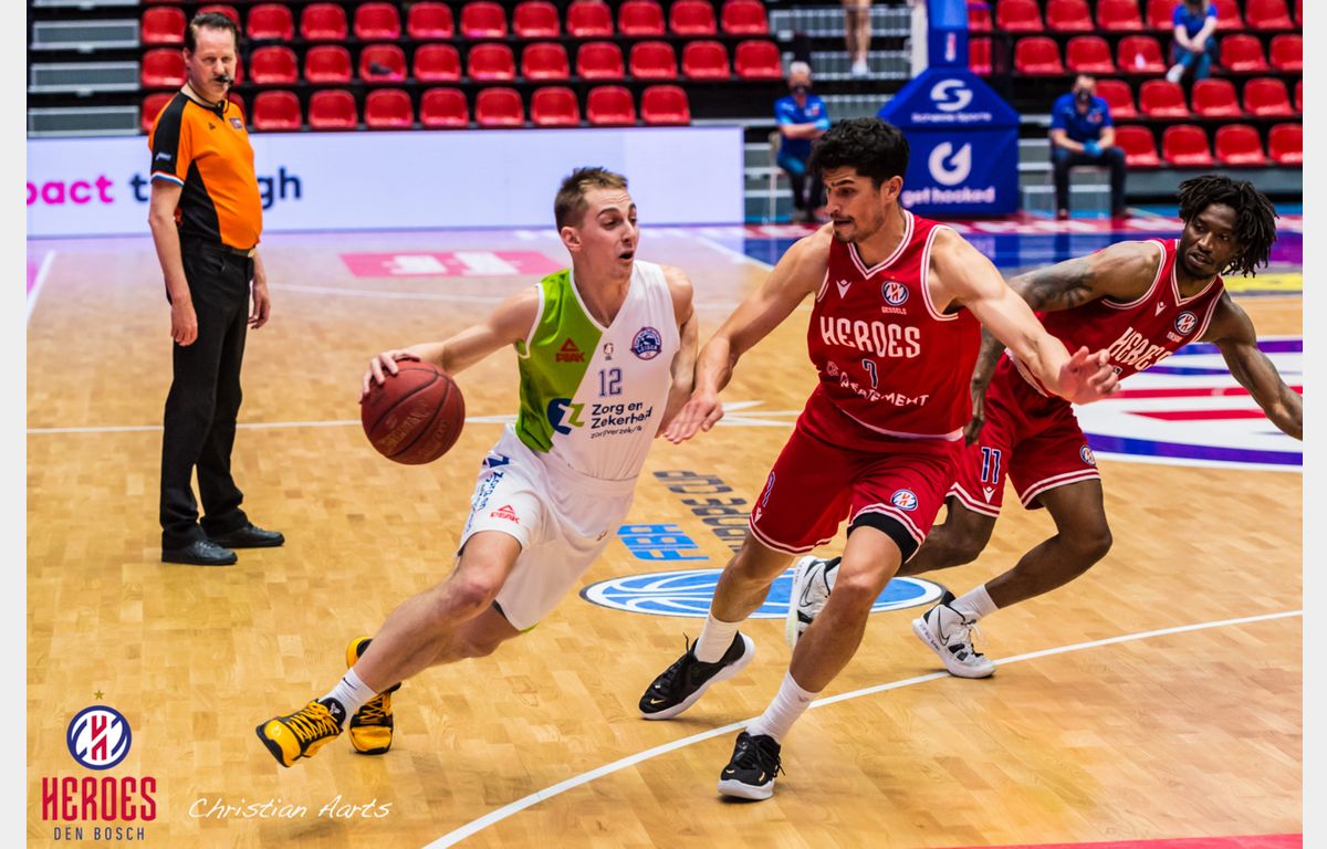 Toen Heroes via Dominic Gilbert op 24-18 kwam, nam Geert Hammink na twee minuten al een time-out om het ritme van de Bosschenaren te verstoren. Marijn Ververs antwoordde na die minuut overleg met een driepunter. Toch nam Heroes Den Bosch langzaam afstand: 39-29. Het laatste woord voor de pauze was voor Zorg en Zekerheid Leiden. Via 4 punten van De Jong en Nzekwesi gingen beide ploegen rusten bij een stand van 41-39 voor de ploeg uit Den Bosch.