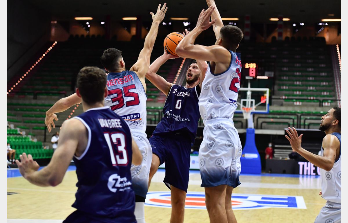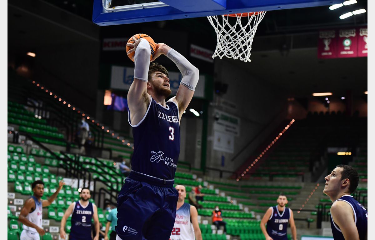 Met nog vier minuten te gaan, leek er een einde te komen aan het Champions League avontuur van Zorg en Zekerheid Leiden. Marcus Tyus had Belfius Mons-Hainaut naar een 72-63 voorsprong geschoten. Ondanks het gedwongen ontbreken van Jhonathan Dunn toonde de Leidse ploeg karakter. Binnen drie minuten stond er dankzij een 9-0 run weer een gelijke stand op het bord. Met nog drie seconden te gaan, kreeg Zorg en Zekerheid Leiden de bal uit op de aanvallende helft. De Jong benutte een give & go met Asbjørn Midtgaard, waardoor Zorg en Zekerheid Leiden de winst alsnog pakte: 74-76. Komende woensdag volgt de tweede 'finale'.