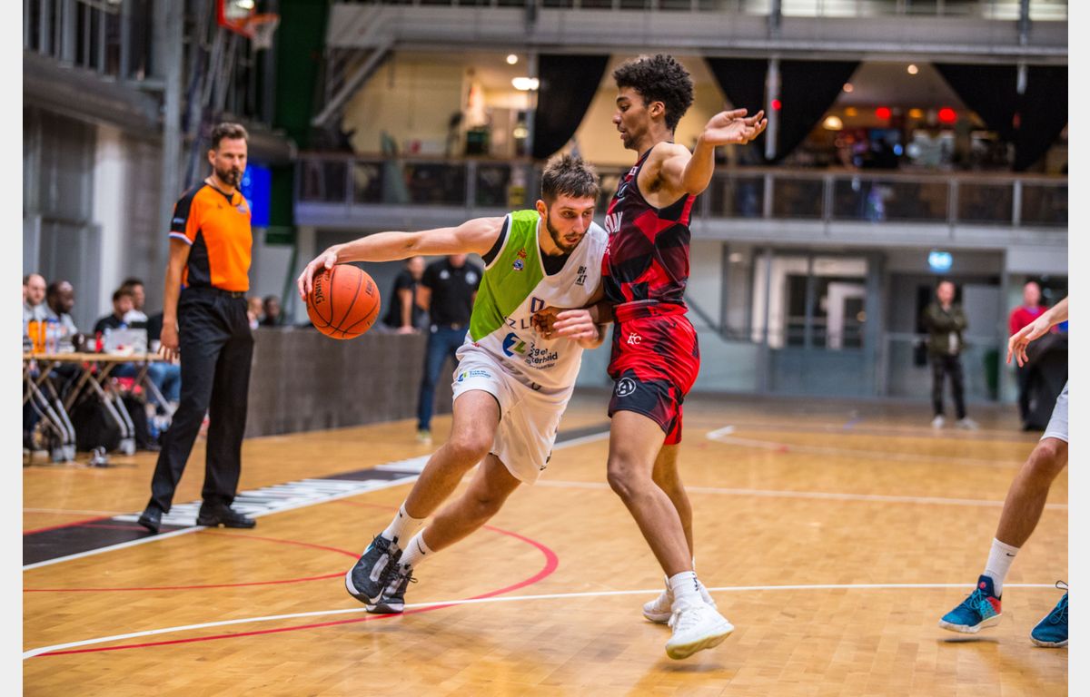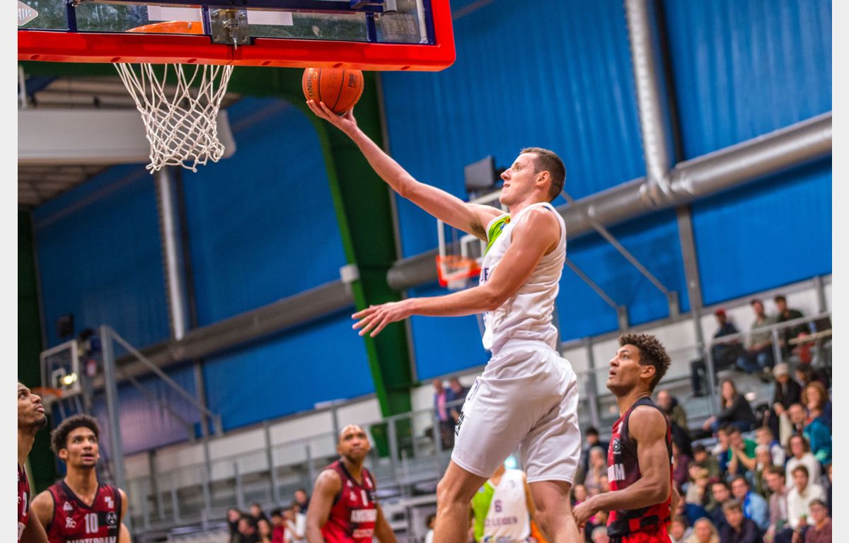 In het derde kwart liep het verschil toch wel flink op. Luuk van Bree en met name Einaras Tubutis (10 punten in het derde kwart) deden een flinke duit in het zakje. Asbjørn Midtgaard pakte enkele vrije worpen mee, zodat het na drie keer tien minuten 43-69 stond.