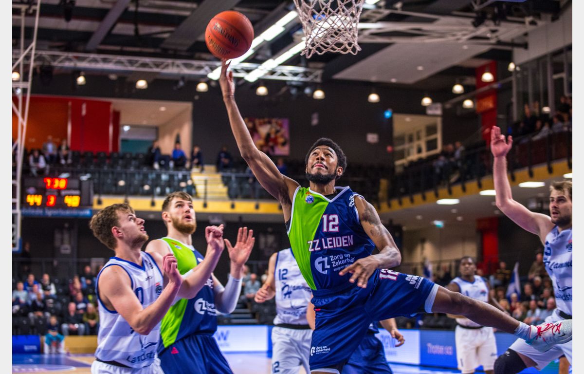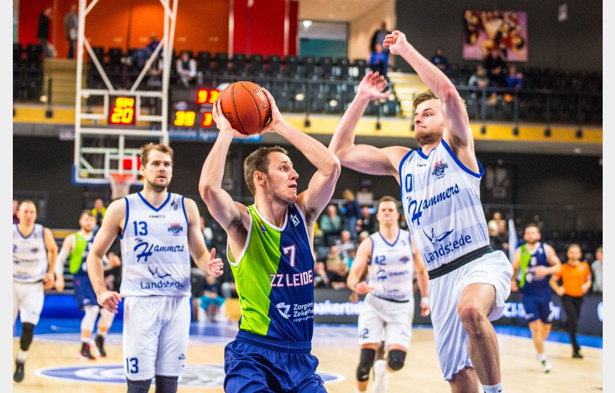 Zorg en Zekerheid Leiden heeft de altijd lastige uitwedstrijd tegen Landstede Hammers in winst omgezet. Na een sterk eerste kwart(15-21) nam de Zwolse formatie het heft in handen. Aan het begin van het vierde kwart pakte de Leidse ploeg de voorsprong terug, maar met nog iets meer dan drie minuten te gaan was Landstede weer aan de leiding gekomen: 66-63. Een 8-0 run van Zorg en Zekerheid Leiden bleek beslissend te zijn: 68-75.
