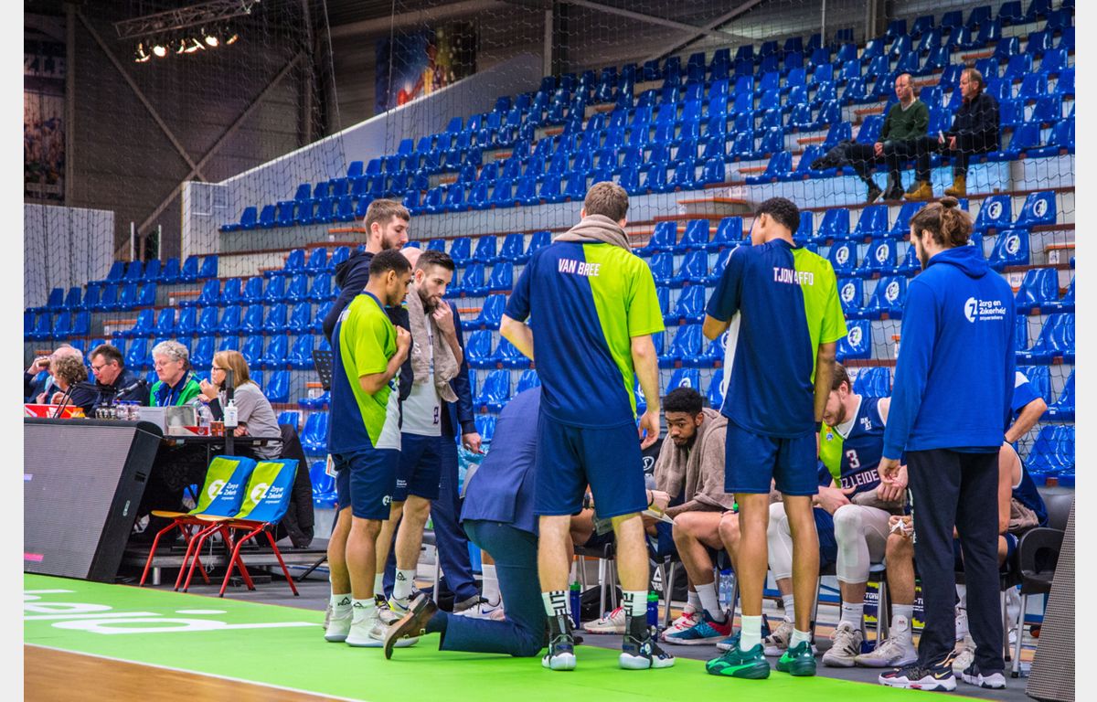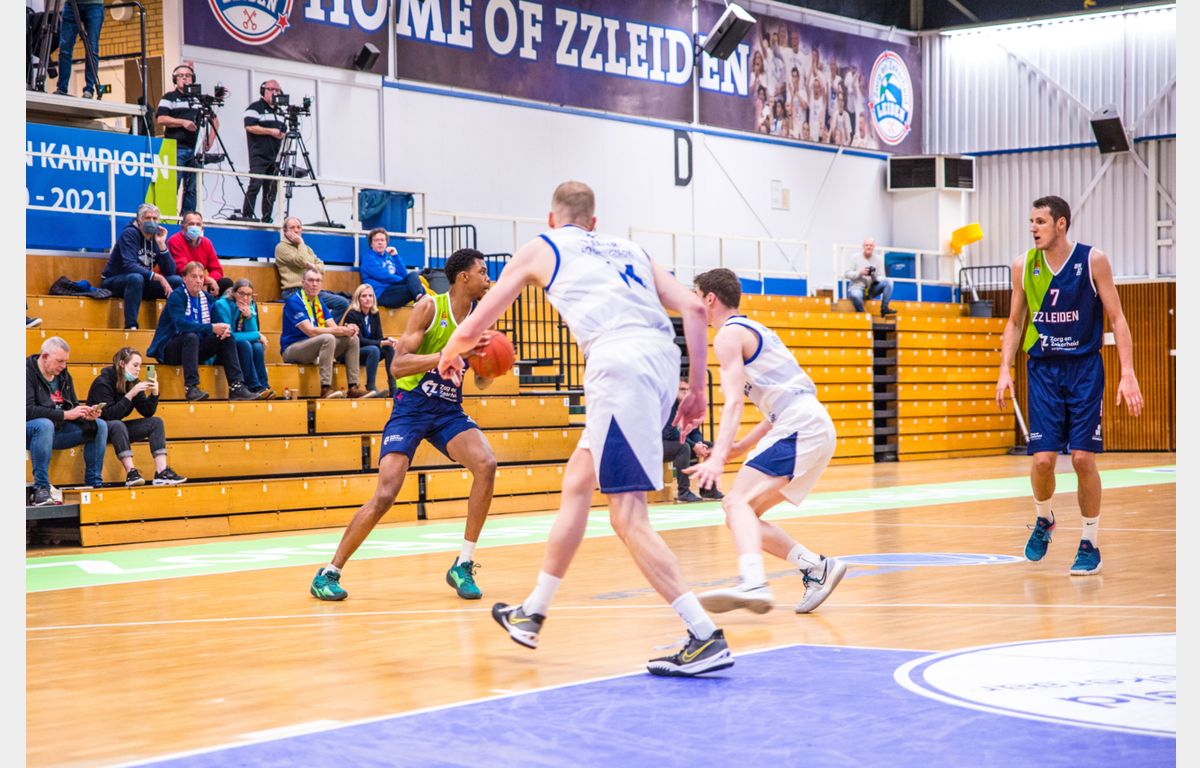 Zorg en Zekerheid Leiden is zaterdag tegen de eerste thuisnederlaag in de BNXT League opgelopen. De Leidse ploeg, die zonder de zieke Arunas Mikalauskas aantrad, was niet in staat om de agressie van Landstede Hammers te matchen. Zorg en Zekerheid Leiden startte nog wel goed (14-5), maar keek bij rust al tegen een ruime achterstand aan: 37-47. Na de pauze had de Leidse ploeg wel een paar runnetjes, maar de zege van Landstede Hammers kwam niet meer in gevaar.
