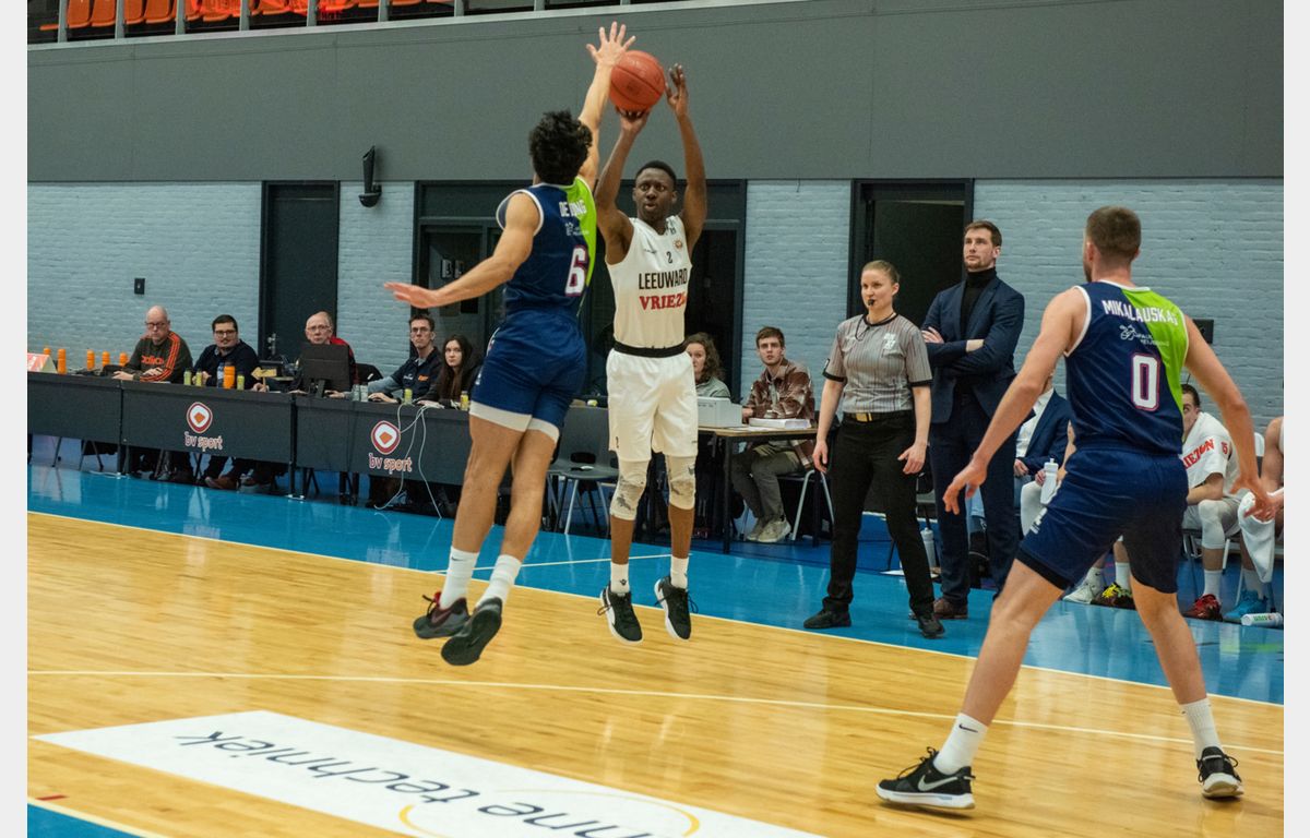 Zorg en Zekerheid Leiden begon goed aan de wedstrijd. Arunas Mikalauskas had het op z’n heupen in de zaal waar zijn Nederlandse carrière in 2019 begon. De Litouwse forward kreeg steun van Jhonathan Dunn en stond na twee minuten in het tweede kwart al met 15-28 voor. Van game over was echter geen sprake. Net als tegen Yoast United kreeg de Leidse ploeg een 12-0 run tegen. Vier minuten voor rust kwam Aris Leeuwarden zelfs op voorsprong, maar toch sloot Zorg en Zekerheid Leiden de eerste helft met een 33-37 voorsprong af.