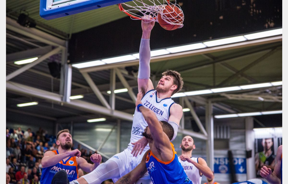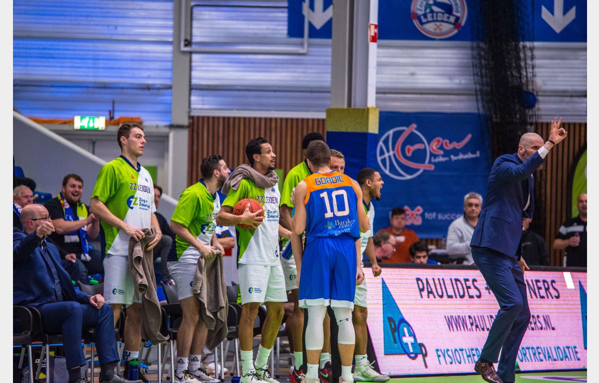 Een fraaie assist van De Jong leidde tot een dunk van Tubutis. Nadat Mornar Bar had gemist, stelde Marijn Ververs met een lay-up plus rake bonus de Leidse zege definitief veilig. De winstpartij leidde tot een staande ovatie van het uitzinnige publiek. Volgende week woensdag valt dus de beslissing of Zorg en Zekerheid Leiden Europees mag overwinteren of dat de tournee in Turkije eindigt.