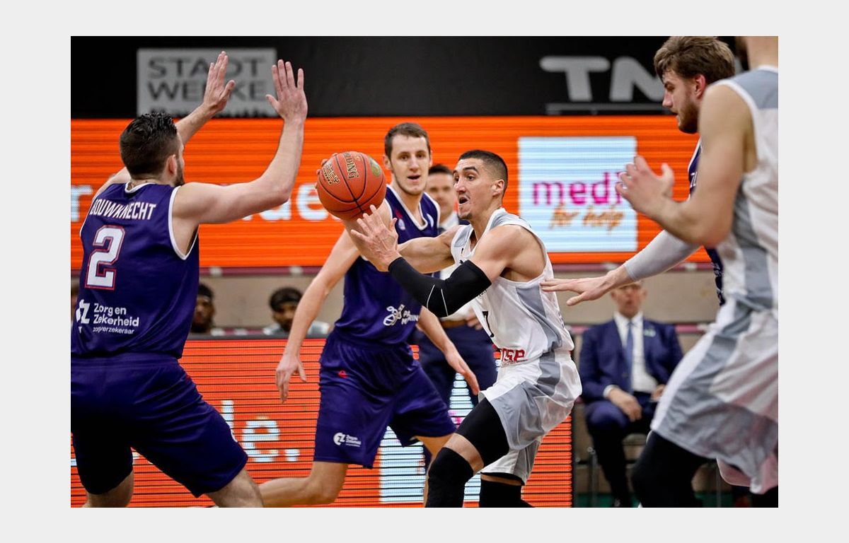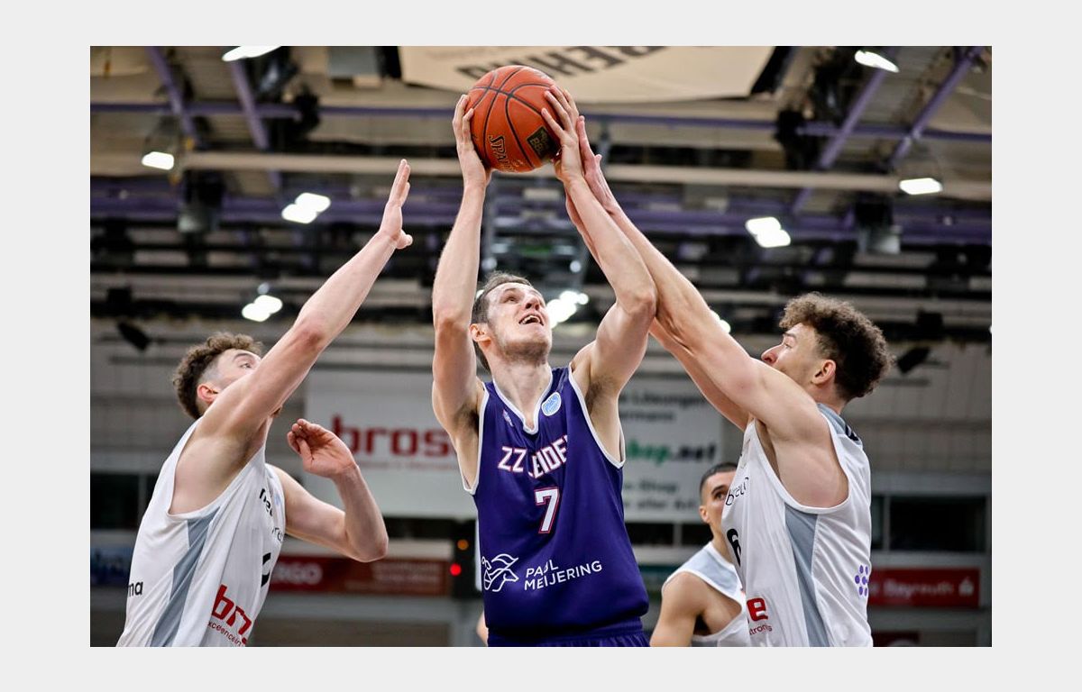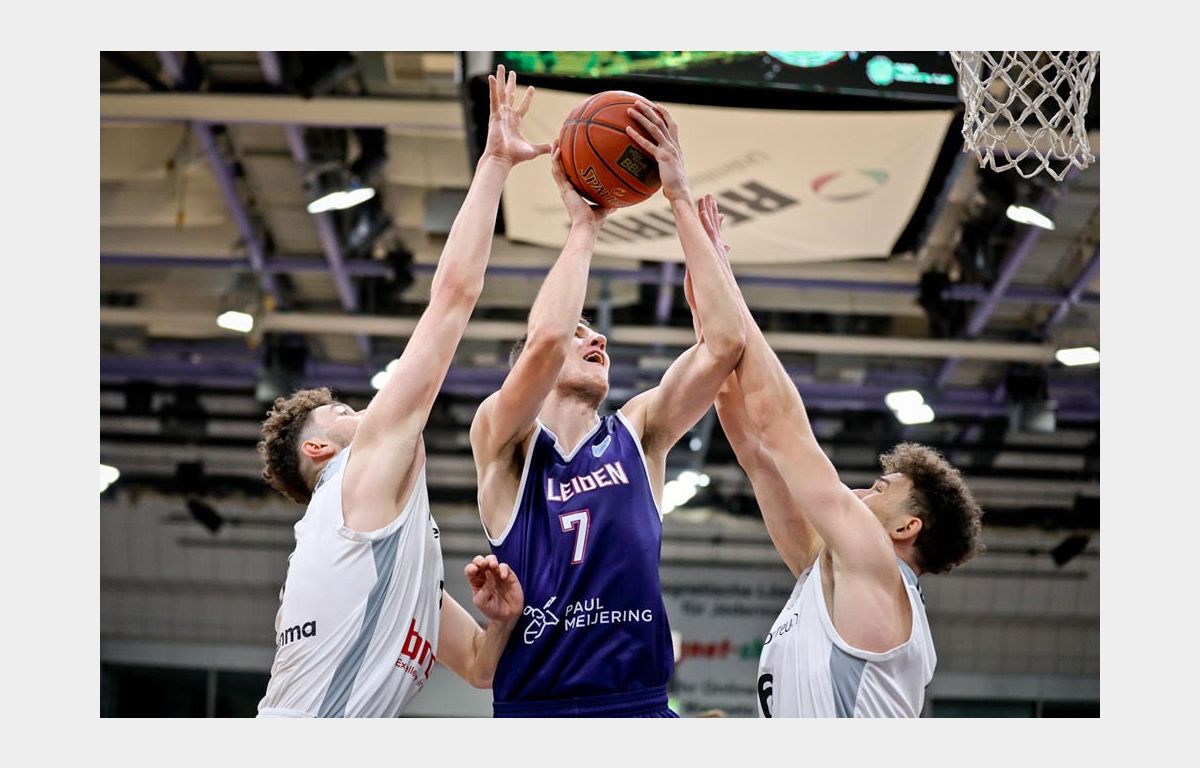 Zoals gezegd werd Dunn topscorer met 27 punten, maar ook de cijfers van Midtgaard (21 punten, 13 rebounds) en Tubutis (21 punten) mochten er zijn. De Jong kwam weliswaar niet verder dan 8 punten, maar deelde wel 9 assists uit en pakte 3 steals. Zorg en Zekerheid Leiden gaat derhalve aan kop in Groep I.