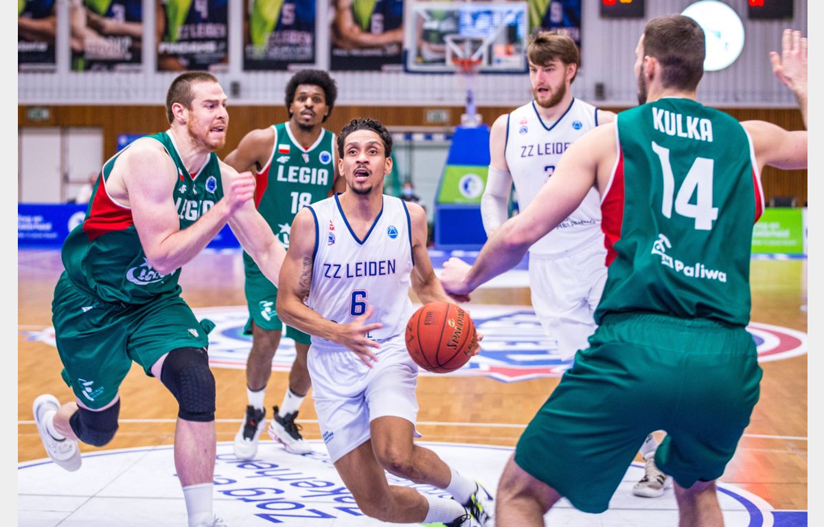 Zorg en Zekerheid Leiden heeft de goede zege in Bayreuth geen vervolg kunnen geven. Alleen in het tweede kwart imponeerde Zorg en Zekerheid Leiden met een 22-0 run, maar vlak voor rust was Legia Warszawa al weer bijna op gelijke hoogte. Na de pauze namen de Polen de leiding en hoefden ze niet meer terug te kijken: 78-90.