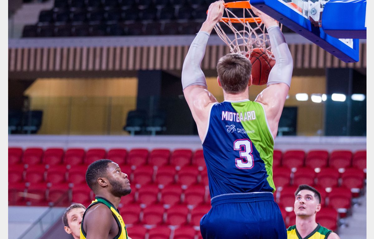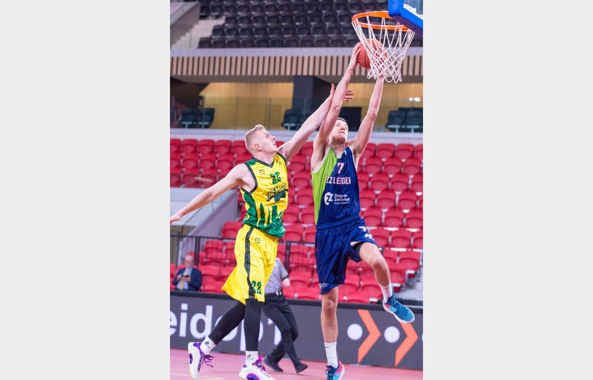 Na de pauze ging Zorg en Zekerheid Leiden stug door. Arunas Mikalauskas tekende in het derde kwart voor drie bommetjes en leverde voor de tweede keer een perfecte alley-oop pass op Midtgaard af. Van spanning was uiteraard geen sprake en Geert Hammink kon dan ook iedereen speeltijd geven. Met 24 minuten kreeg Mikalauskas nog de meeste speeltijd. Geen overbodige luxe overigens, want woensdag komt Zorg en Zekerheid Leiden alweer in actie, in een thuiswedstrijd tegen Basketbal Academie Limburg.