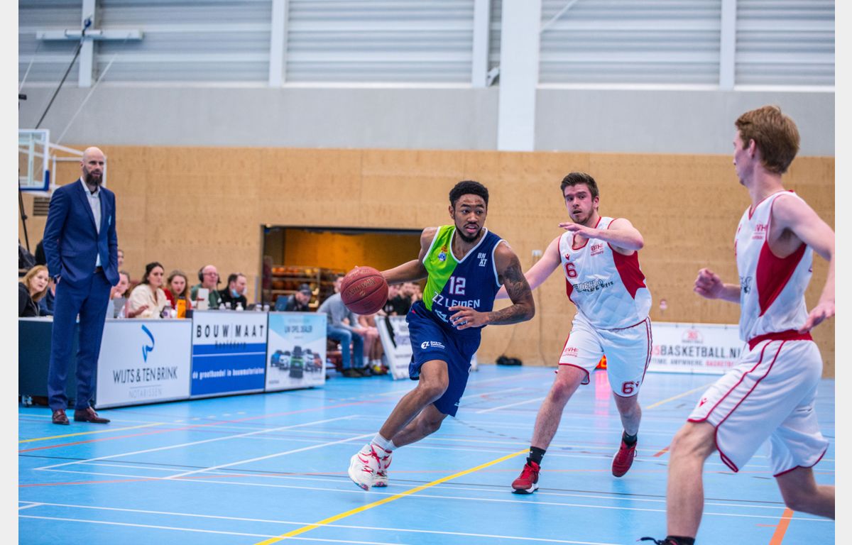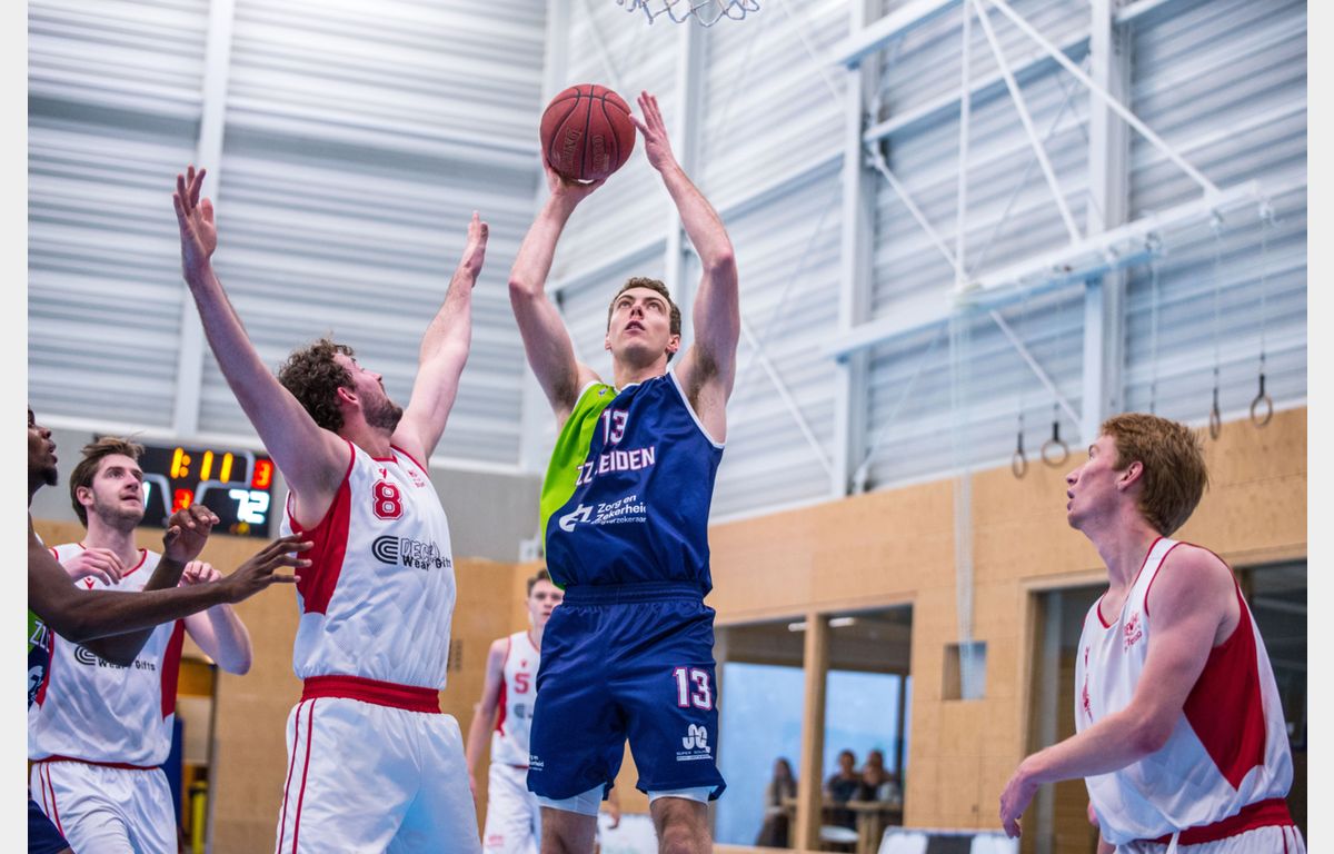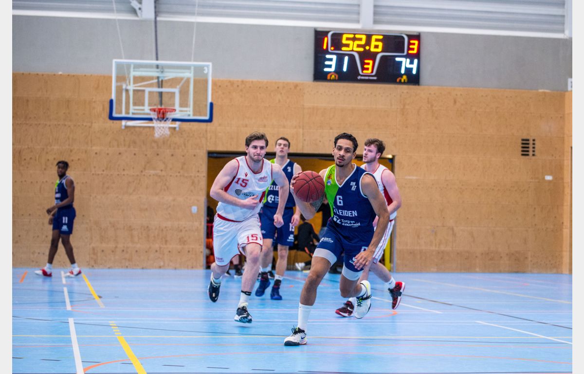 Scores: Luuk van Bree 21, Jhonathan Dunn 20, Asbjørn Midtgaard 12, Kevin Jonathan 10, Einaras Tubutis 9 (9 rebounds), Quincy Tjon-Affo 9, Maarten Bouwknecht 5 (8 assists), Marijn Ververs 5 en Worthy de Jong 4 (4 steals).