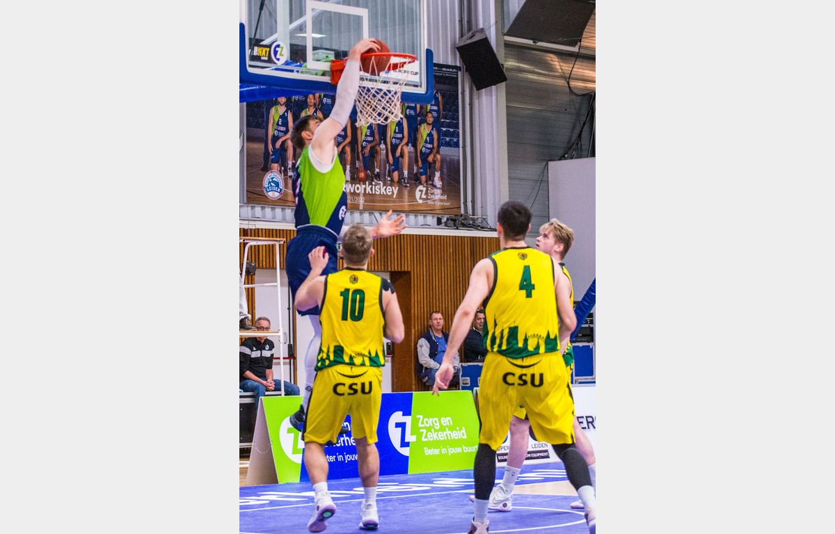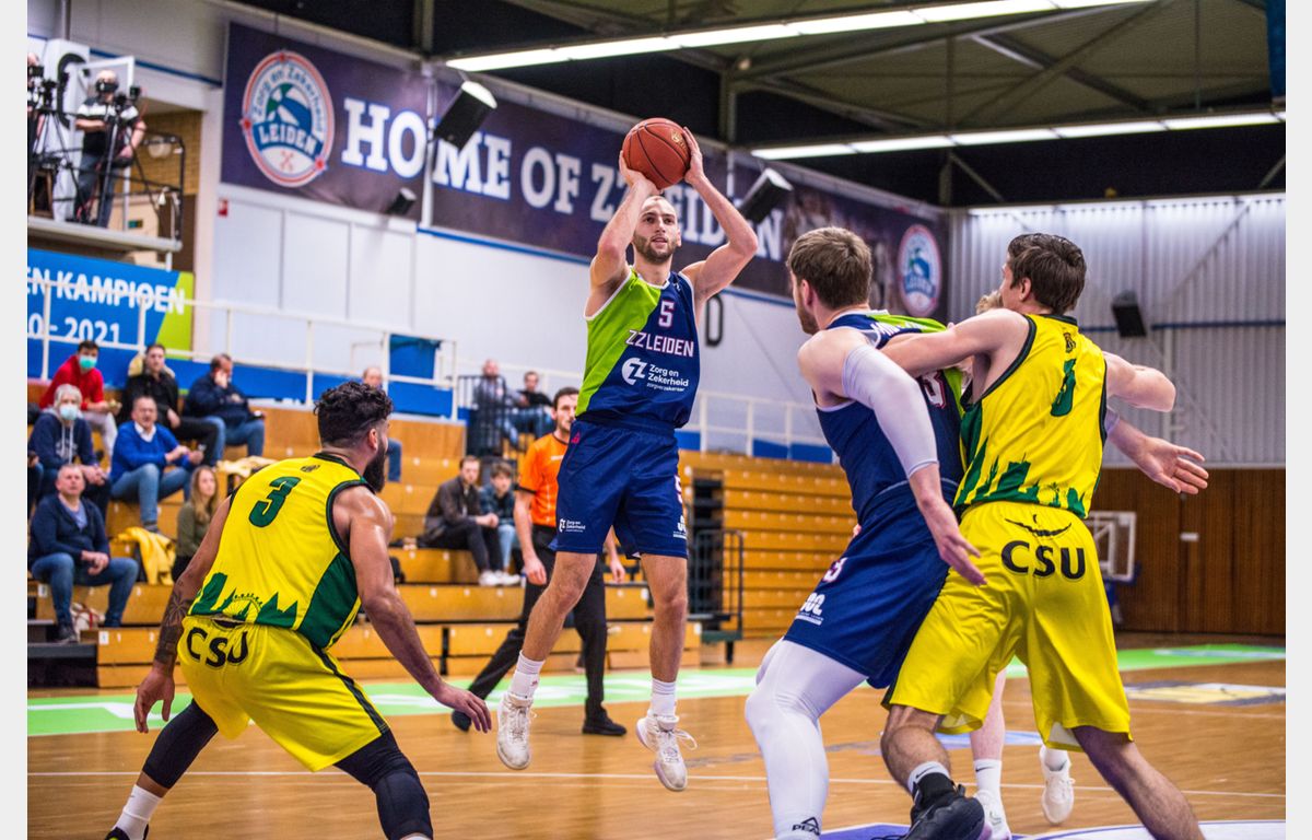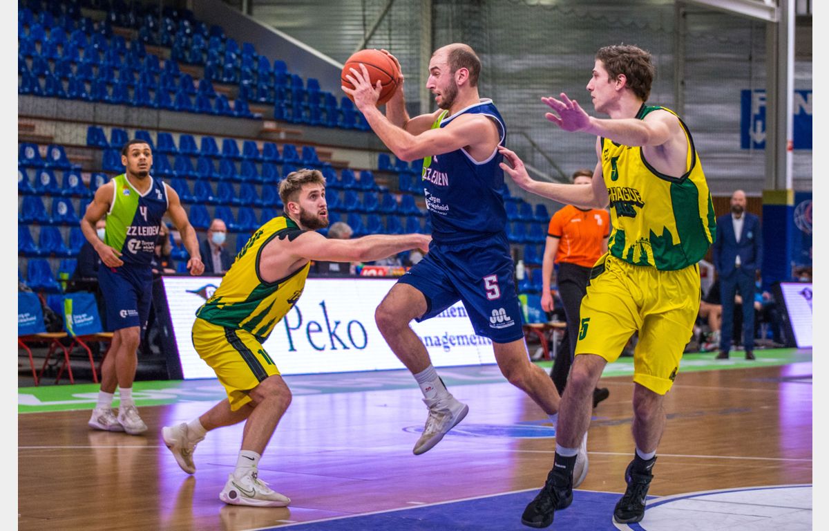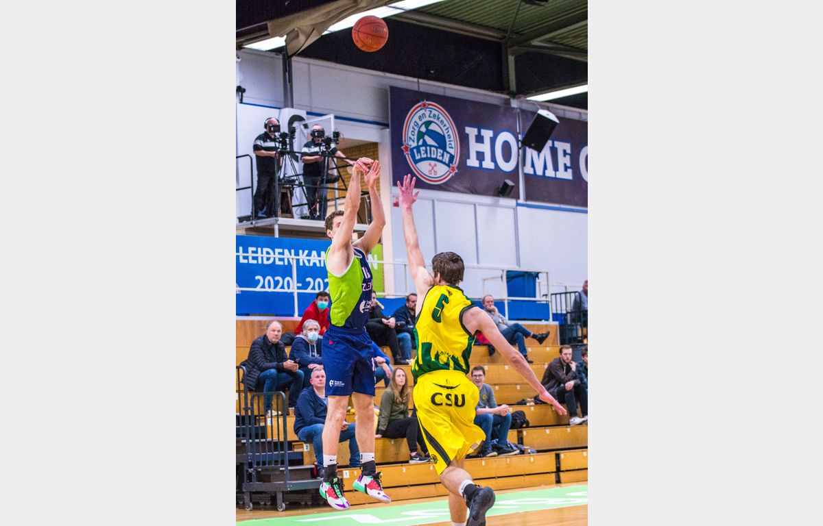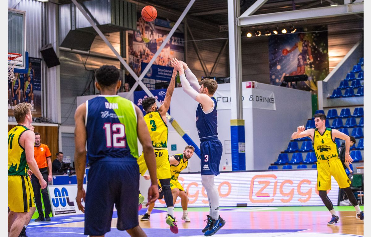 Zorg en Zekerheid Leiden speelde woensdagavond voor de vierde keer in nog geen drie weken tijd tegen The Hague Royals. Zonder Worthy de Jong, Maarten Bouwknecht en Quincy Tjon Affo, maar met debutant Lucas Kruithof werd ook dit duel met een overwinning afgesloten. In het laatste kwart kwam de Leidse ploeg 30 punten voor te staan, maar uiteindelijk werd het toch een kleinere marge: 80-66.