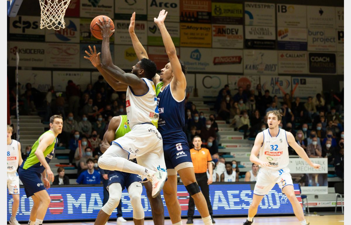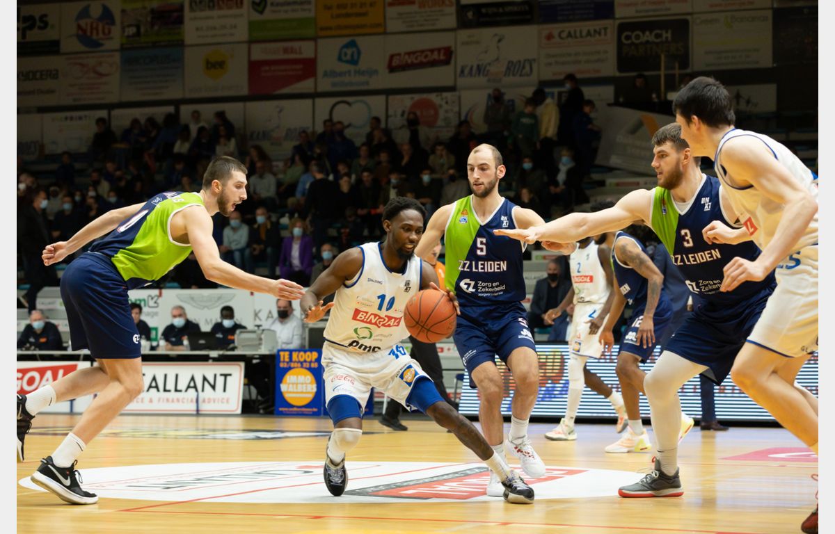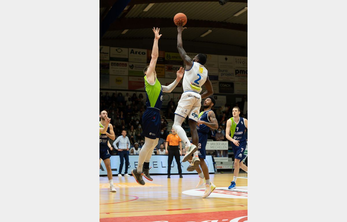 Luuk van Bree was na afloop van het spannende duel duidelijk. “We begonnen te slap aan de wedstrijd”, zei hij voor de camera’s van Ziggo Sport. Daar was niets aan gelogen. In de eerste vier minuten wist Zorg en Zekerheid Leiden nog gelijke tred te houden met Kangoeroes Basket Mechelen, waar de jonge Nederlander Jesse Waleson een goede pot neerzette met 12 punten. Van 8-10 liep de Belgische formatie door naar een 20-12 voorsprong. Zorg en Zekerheid Leiden was slordig en zag de achterstand in het eerste kwart zelfs oplopen naar 12 punten (26-14). Via scores van Worthy de Jong en Jhonathan Dunn werd het eerste kwart bij 28-18 afgesloten.