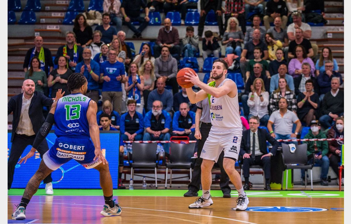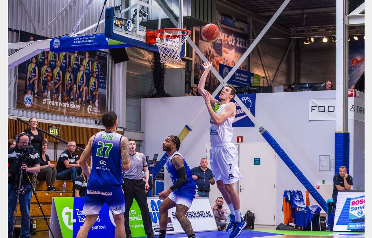 Anderhalve minuut voor tijd kwam Zorg en Zekerheid Leiden na een and-1 van Midtgaard met 70-59 voor te staan. Vanaf 32-52 praat je dan over een run van 38-7. Jhonathan Dunn had nog een dunk, al drukte hij de bal nog net door de ring. De press van Belfius Mons-Hainaut werd eenvoudig opgerold. Op assist van Arunas Mikalauskas dunkte Midtgaard 74-63 op het bord. Een driepunter van Muhamed Pasalic bepaalde de eindstand op 74-66. Buiten dat de Leidse ploeg meer inside dreiging begon te vertonen, werd het balverlies ook sterk beperkt. In de tweede helft leed de Leidse ploeg slechts één keer balverlies. Midtgaard eindigde op 20 punten, één meer dan Nzekwesi. Bouwknecht sloot af met 15 punten. Mikalauskas had ook weer bijzondere statline: 7 punten, 6 rebounds en 8 assists.