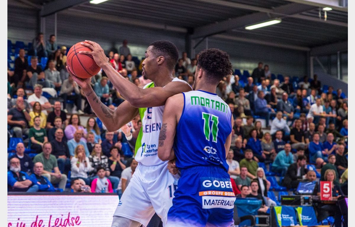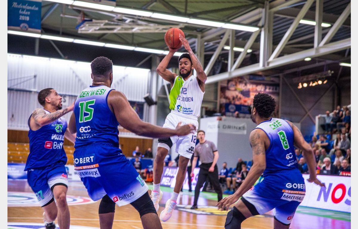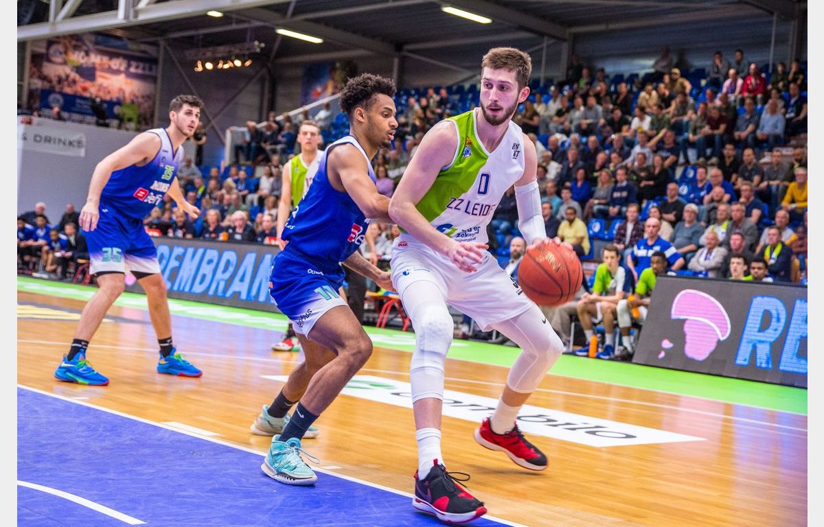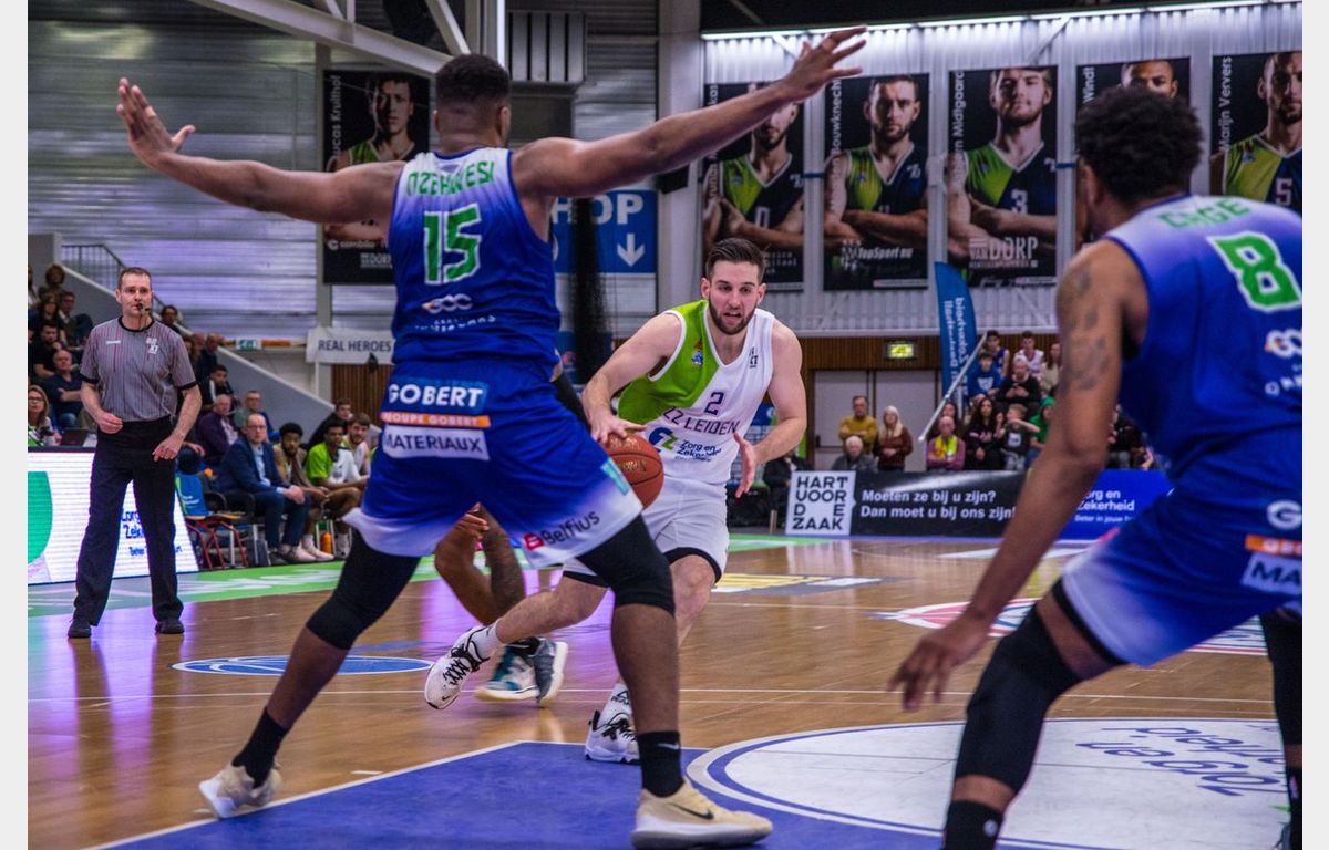 Zelden zal een wedstrijd zo overduidelijk twee gezichten hebben laten zien als dit duel van Zorg en Zekerheid Leiden tegen Belfius Mons-Hainaut. In de eerste helft lukte er bij Zorg en Zekerheid Leiden vrij weinig. De Belgische formatie, die al twee keer eerder van Zorg en Zekerheid Leiden had verloren, speelde frank en vrij en pakte een ruime voorsprong. Vooral de vooraf nog in het zonnetje gezette Emmanuel Nzekwesi voelde zich als een vis in het water. Mede door zijn 16 punten was het bij rust 31-46.