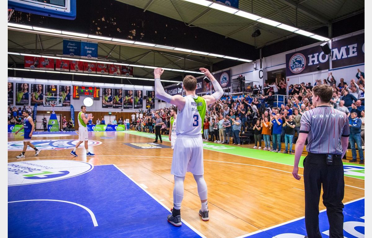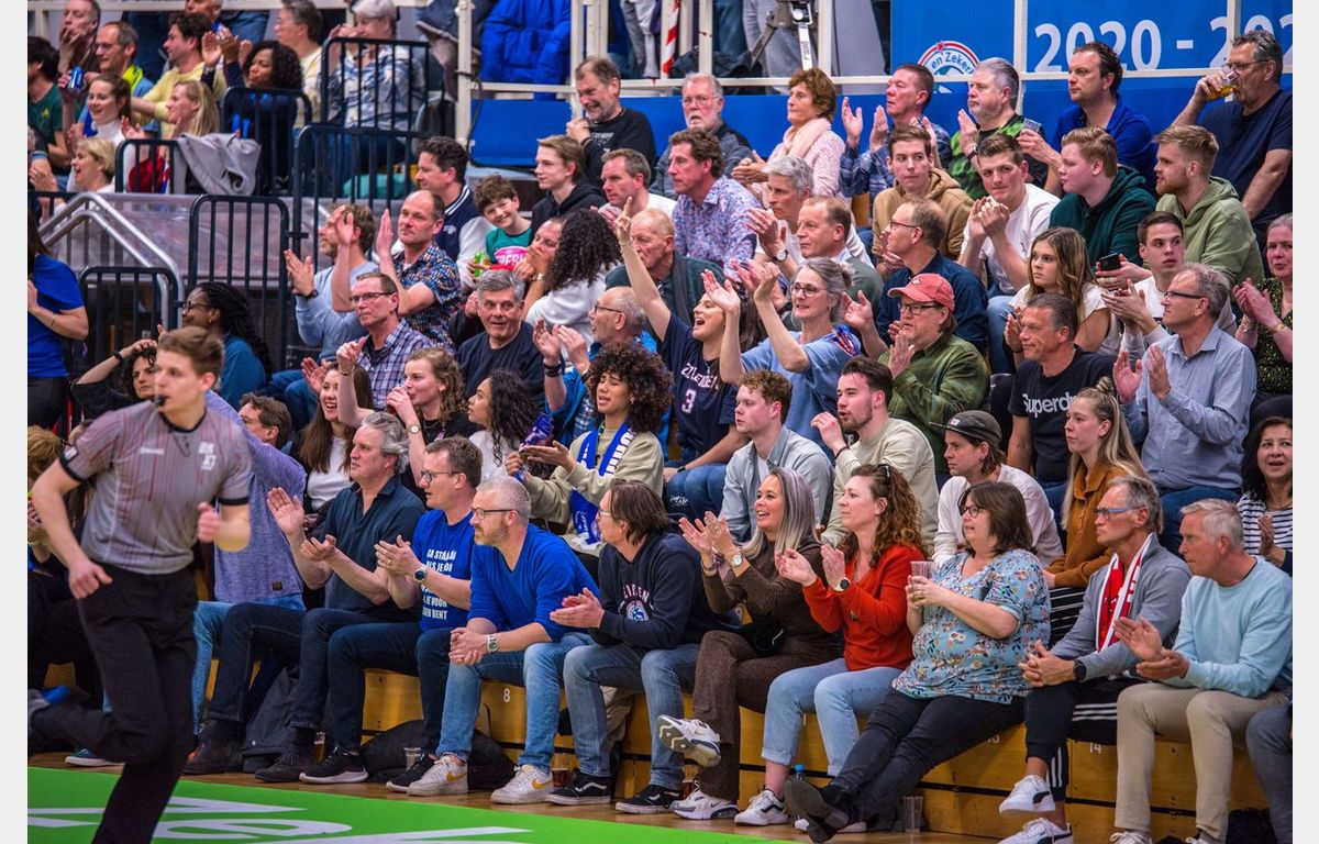 Hoe anders was dat na een paar minuten spelen in de tweede helft. Na drie minuten was er al een gat geslagen van twintig punten (32-52) en leek Zorg en Zekerheid Leiden rijp voor de slachtbank. De terugkeer werd ingezet door een hookshot van Asbjørn Midtgaard. Nzekwesi begon te missen en zag ook vaak twee verdedigers tegenover zich. Typerend voor het spel van Belfius Mons-Hainaut was het terugspelen op eigen helft van Zaccharie Mortant die nauwelijks onder druk tegen Nzekwesi aan dribbelde. Het publiek voelde aan dat de ploeg uit België aan het wankelen was en ging zich nog meer roeren. Opgezweept ook door de met een handdoek zwaaiende Worthy de Jong, die een rol als cheerleader op zich nam.