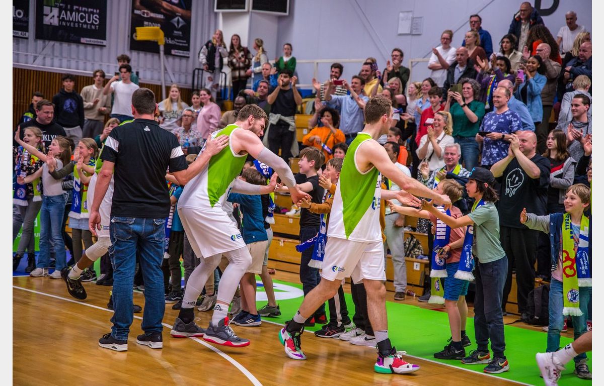 Geert Hammink noemde de vertoning van zijn ploeg voor rust beschamend. Slechts heel even was er wat meer beleving, ook op de tribunes. Einaras Tubutis dunkte een aanvallende rebound binnen, waarna Maarten Bouwknecht een bommetje los liet. De time-out van Vedran Bosnic haalde het publiek weer uit de wedstrijd.
