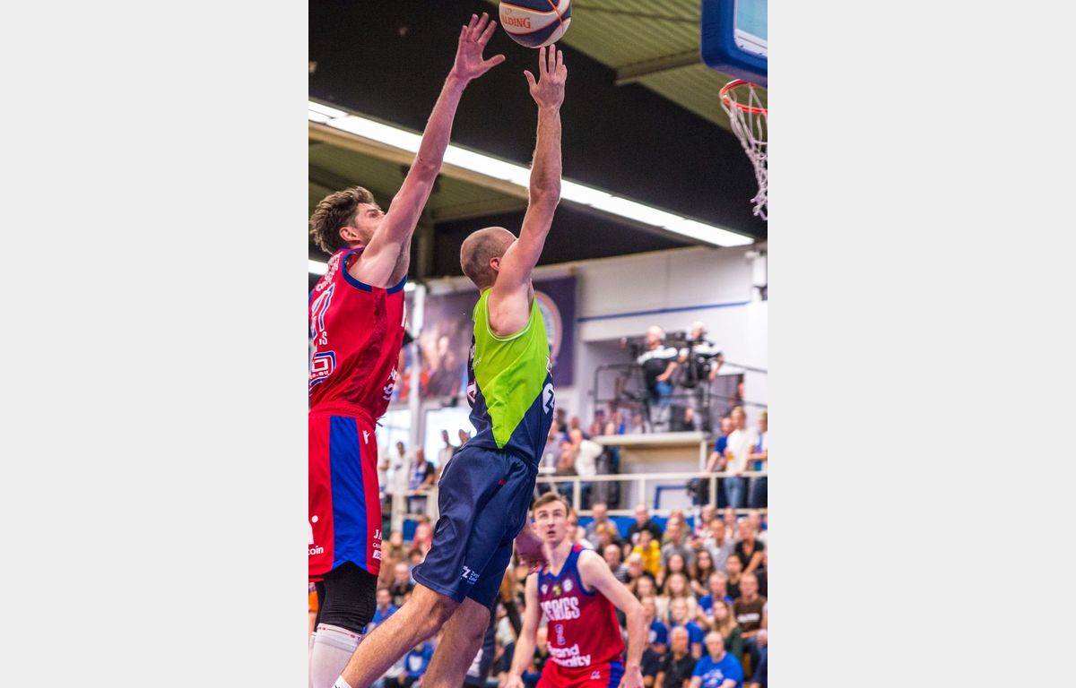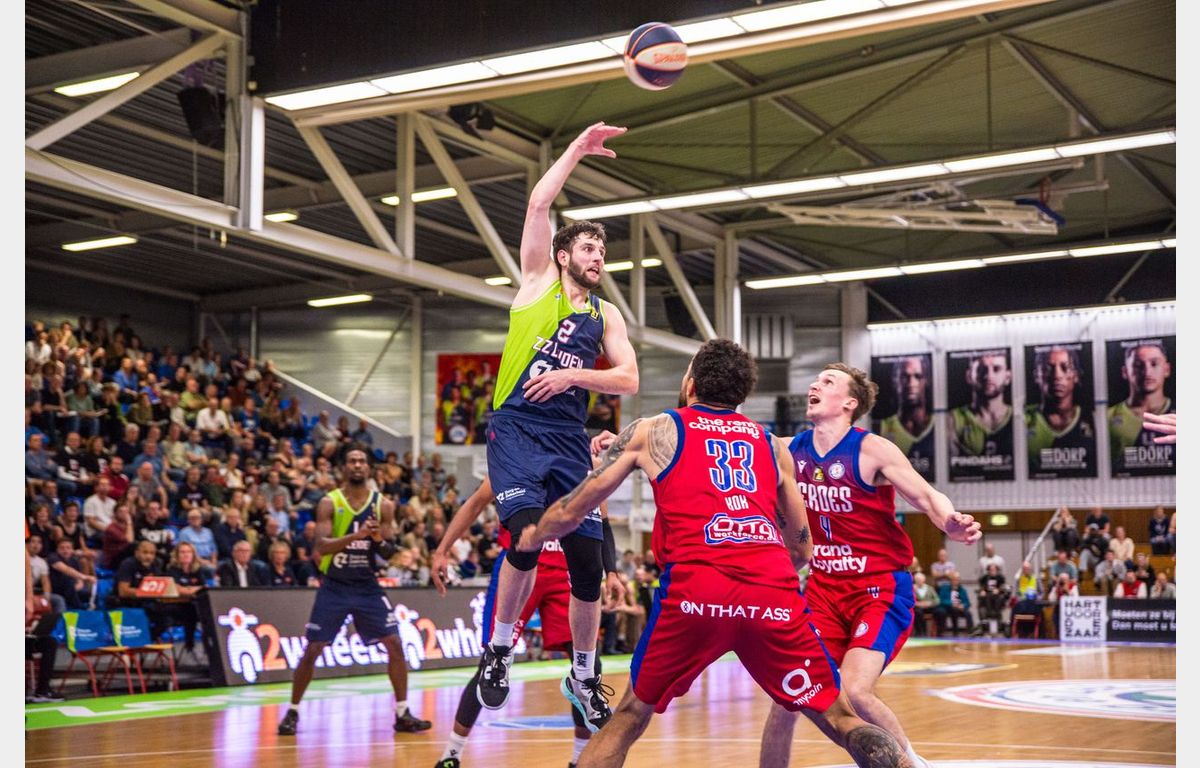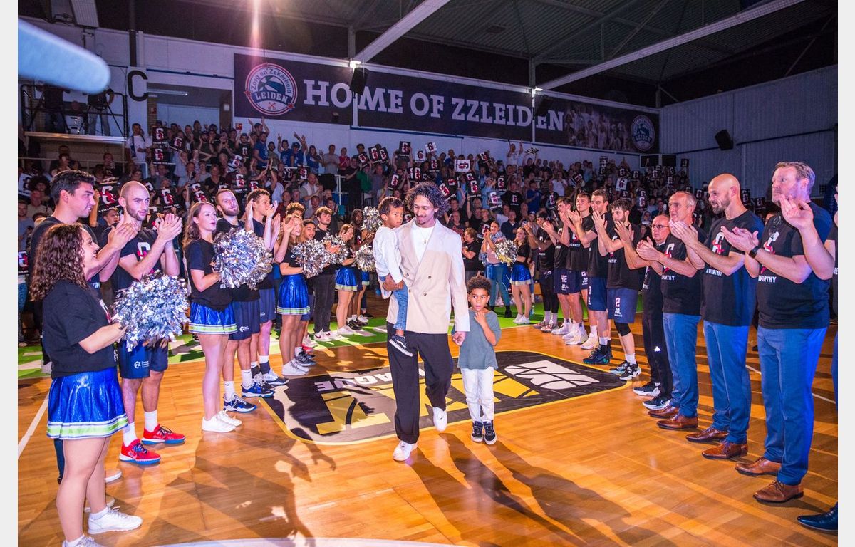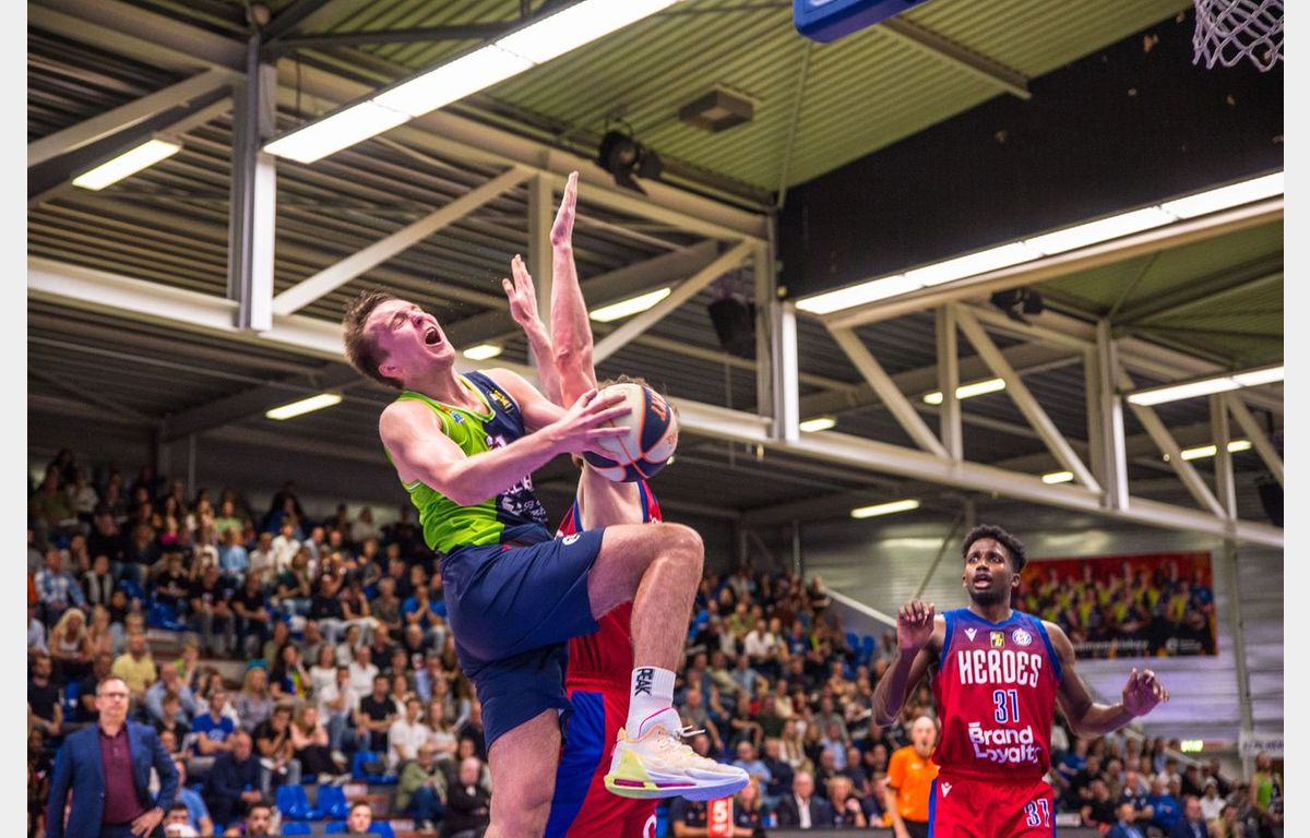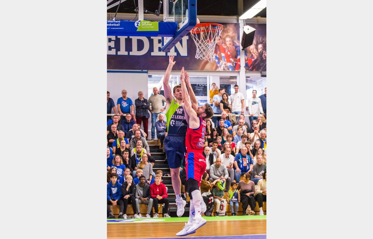 De Vijf Meihal was afgeladen. Veel mensen waren naar de hal gekomen om het afscheid van Worthy de Jong mee te maken. Daar moesten ze nog wel even opwachten, want eerst was er nog de confrontatie tussen Zorg en Zekerheid Leiden en Heroes Den Bosch, de twee nog ongeslagen ploegen in het Nederlandse deel van de BNXT League. Zorg en Zekerheid Leiden kende een prima start van de klassieker. Luuk van Bree opende met een driepunter en ook Deion Hammond wist van ver twee keer raak te knallen. De Leidse ploeg nam een voorsprong van acht punten. Een halve minuut voor het einde van het eerste kwart bracht Maarten Bouwknecht met een drietje het verschil op 9 punten. Keime Helfrich besloot het kwart met een driepunter voor Heroes Den Bosch: 28-22.