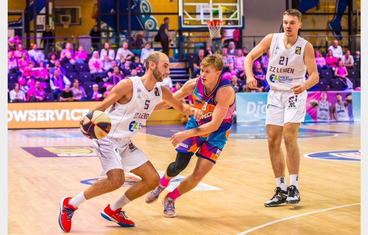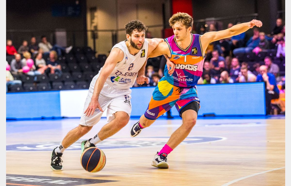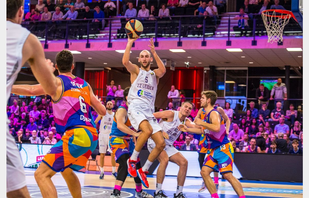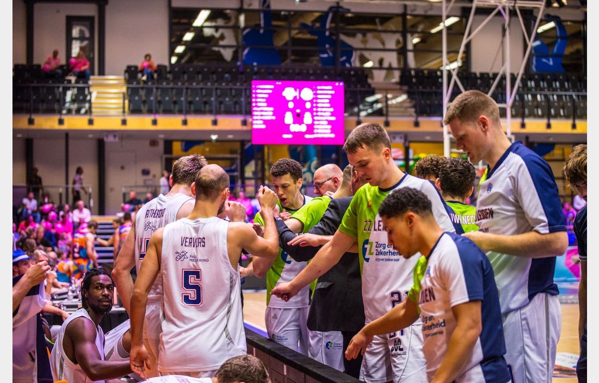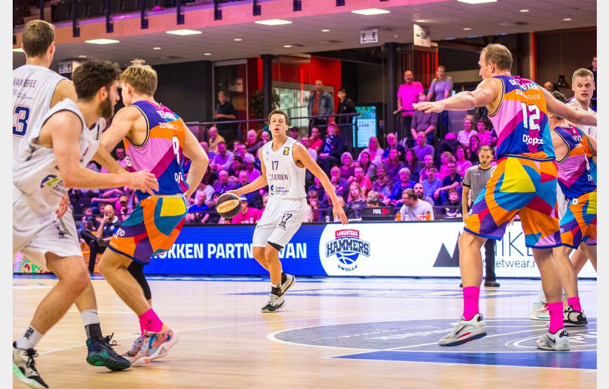 Zorg en Zekerheid Leiden heeft zondagmiddag de tweede wedstrijd in het nog prille seizoen met een nederlaag afgesloten. Zeven minuten voor tijd stond Landstede Hammers met 80-56 voor en leek de wedstrijd in Zwolle wel gespeeld. Dat was dus niet het geval. Landstede werd zes minuten zonder score gehouden, terwijl de Leidse ploeg maar liefst 25 punten op rij scoorde om met nog een minuut te spelen een 80-81 voorsprong te pakken. Het laatste schot van de wedstrijd was voor Maarten Bouwknecht, maar dat trof geen doel. Daardoor bleven de punten in Zwolle: 84-83.