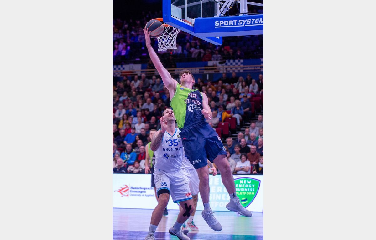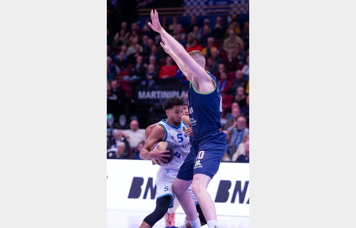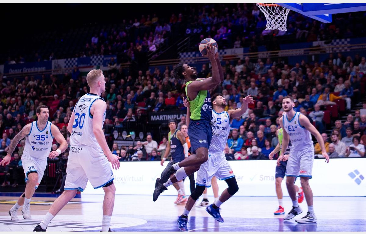 Zorg en Zekerheid Leiden heeft de altijd lastige uitwedstrijd in MartiniPlaza in winst omgezet. Met nog acht minuten te spelen, genoot Donar een 61-53 voorsprong. In de resterende speeltijd sloot de Leidse defensie, terwijl er aanvallend opeens makkelijk werd gescoord. De 1-17 eindsprint zorgde voor een 62-70 overwinning.