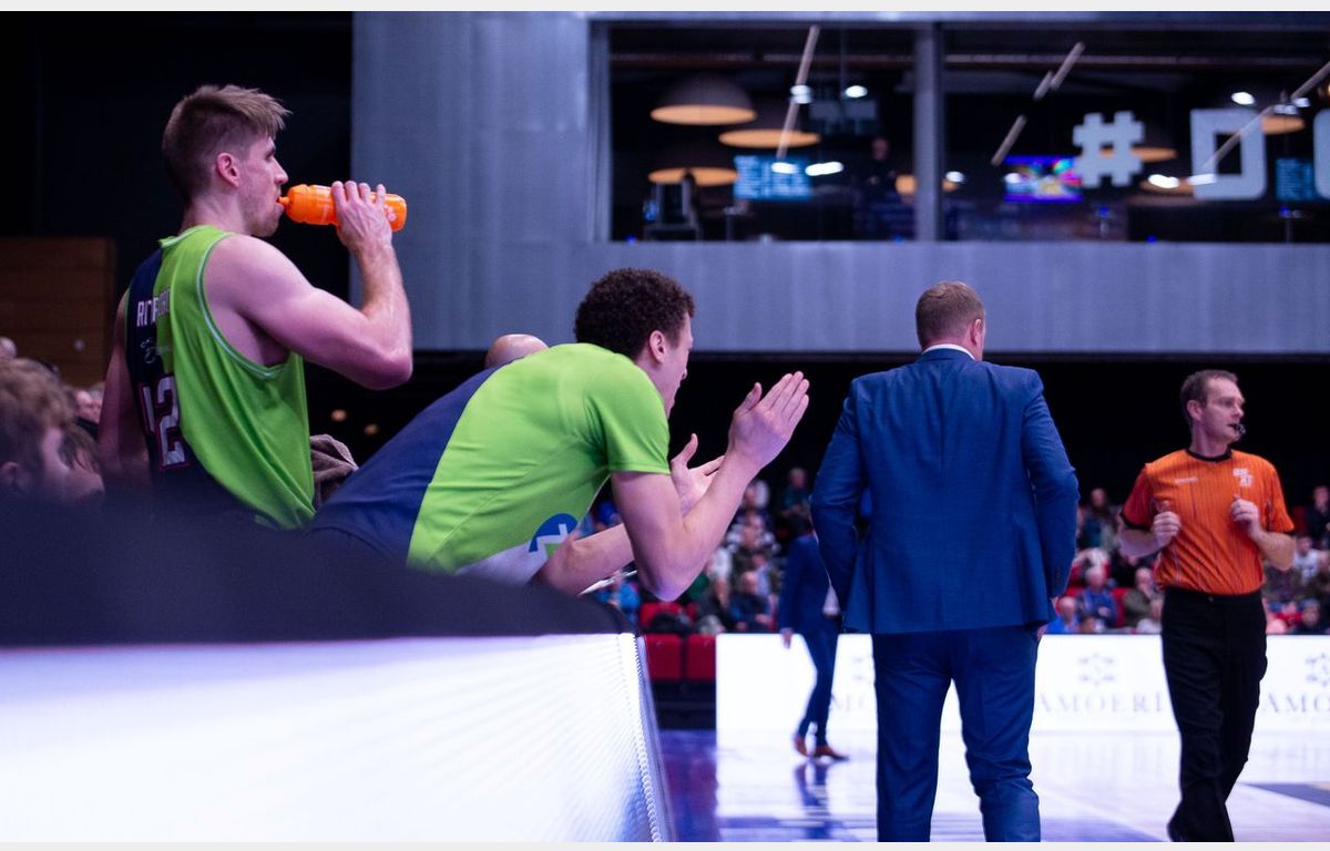 Misschien dat de Leidse formatie daarom niet echt scherp aan het duel begon, getuige vier turnovers in de eerste vier minuten. Het gaf Donar, dat na de wedstrijd op fraaie wijze afscheid nam van Thomas Koenis, de gelegenheid om weg te lopen naar een 18-9 voorsprong. Vier punten op rij van Erikas Venskus wisten de schade na 10 minuten te beperken tot vijf punten: 18-13.