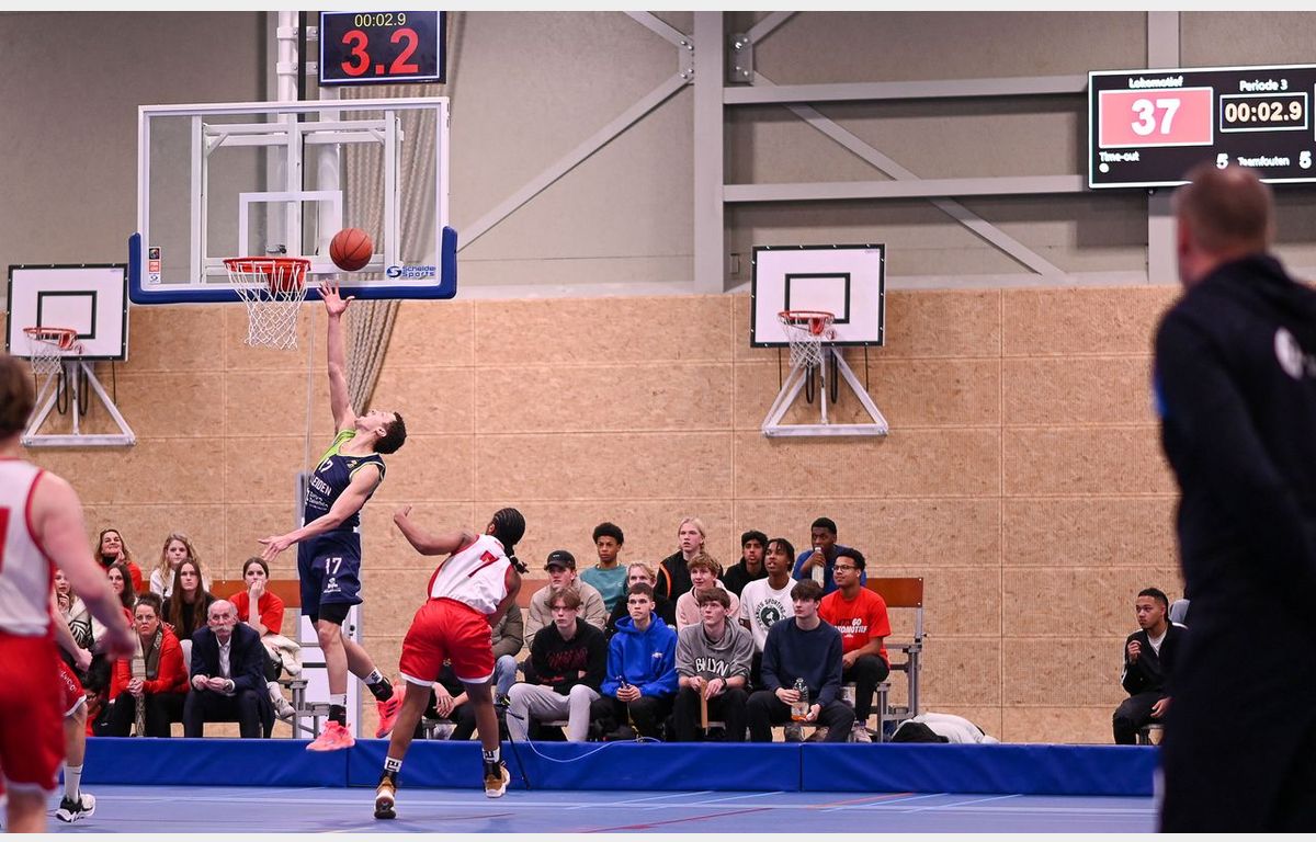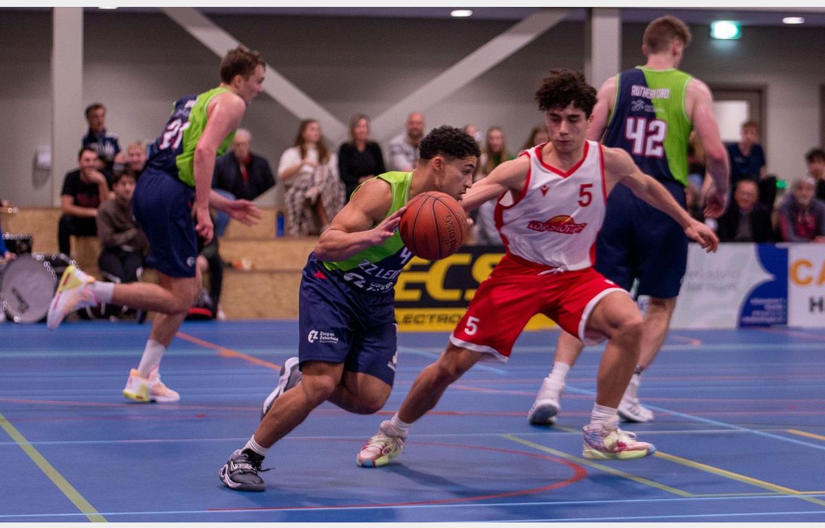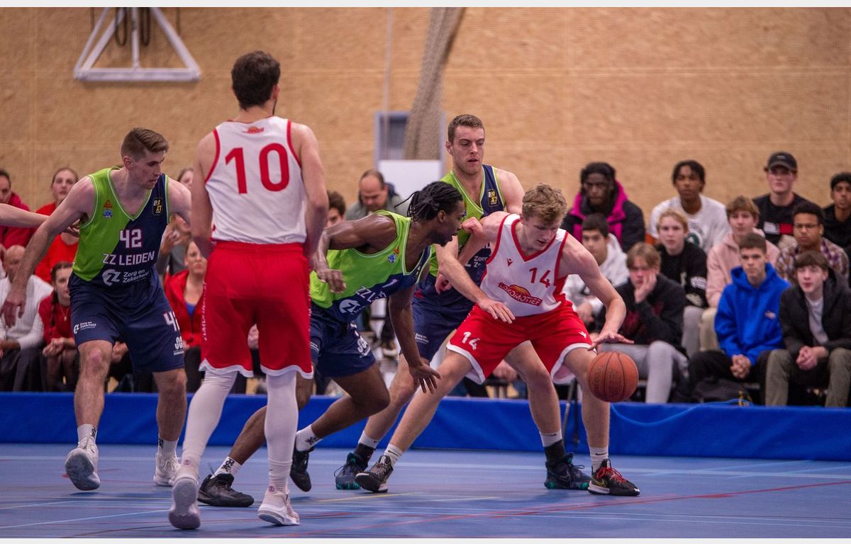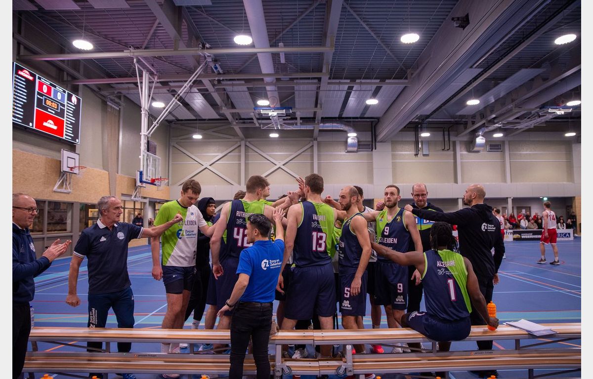 Binnen anderhalve minuut toonde Zorg en Zekerheid Leiden aan dat er een groot verschil zit tussen eerste divisie en BNXT League. Via twee scores van Thomas Rutherford en twee vrije worpen van Marijn Ververs stond het meteen al 0-6. Miles de Koning was de eerste speler van de thuisploeg die tot scoren kwam. Kort daarop volgde twee Leidse dunks. Dat Luuk van Bree kan dunken, hebben we wel vaker gezien. De tweede dunk (voor een stand van 4-15) kwam van Marijn Ververs. Na afloop gaf hij aan dat hij op de training al wel vaker gedunkt heeft, maar dit was de eerste keer in een wedstrijd.