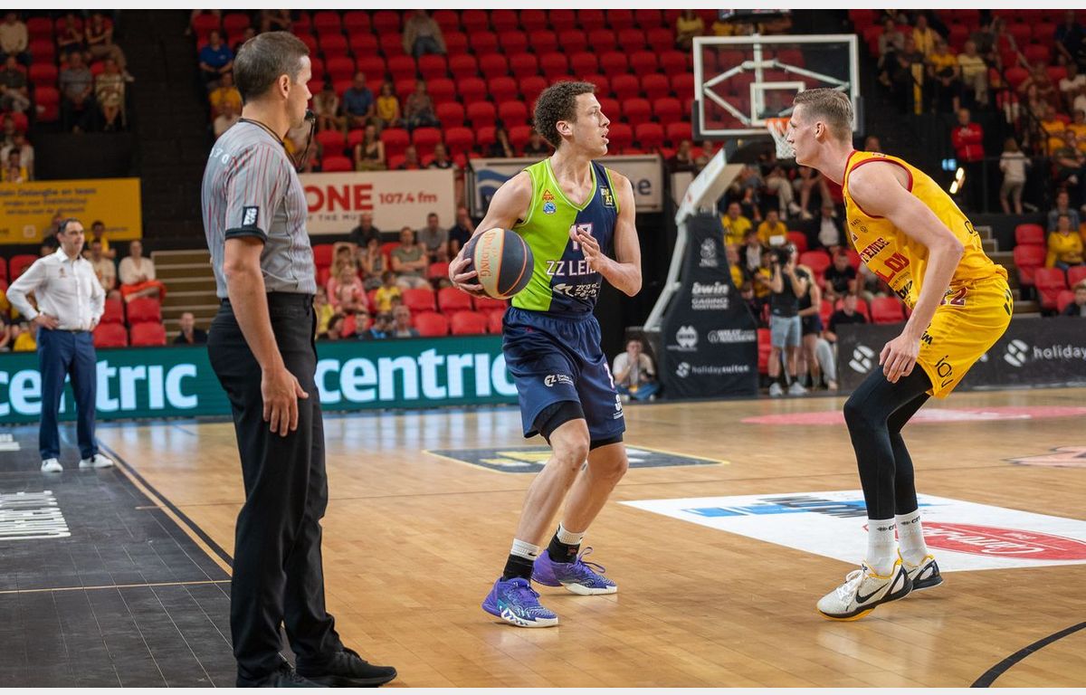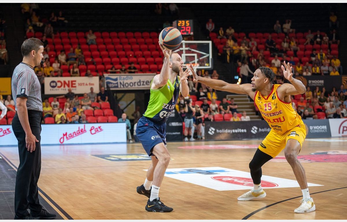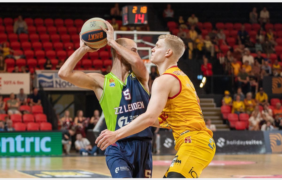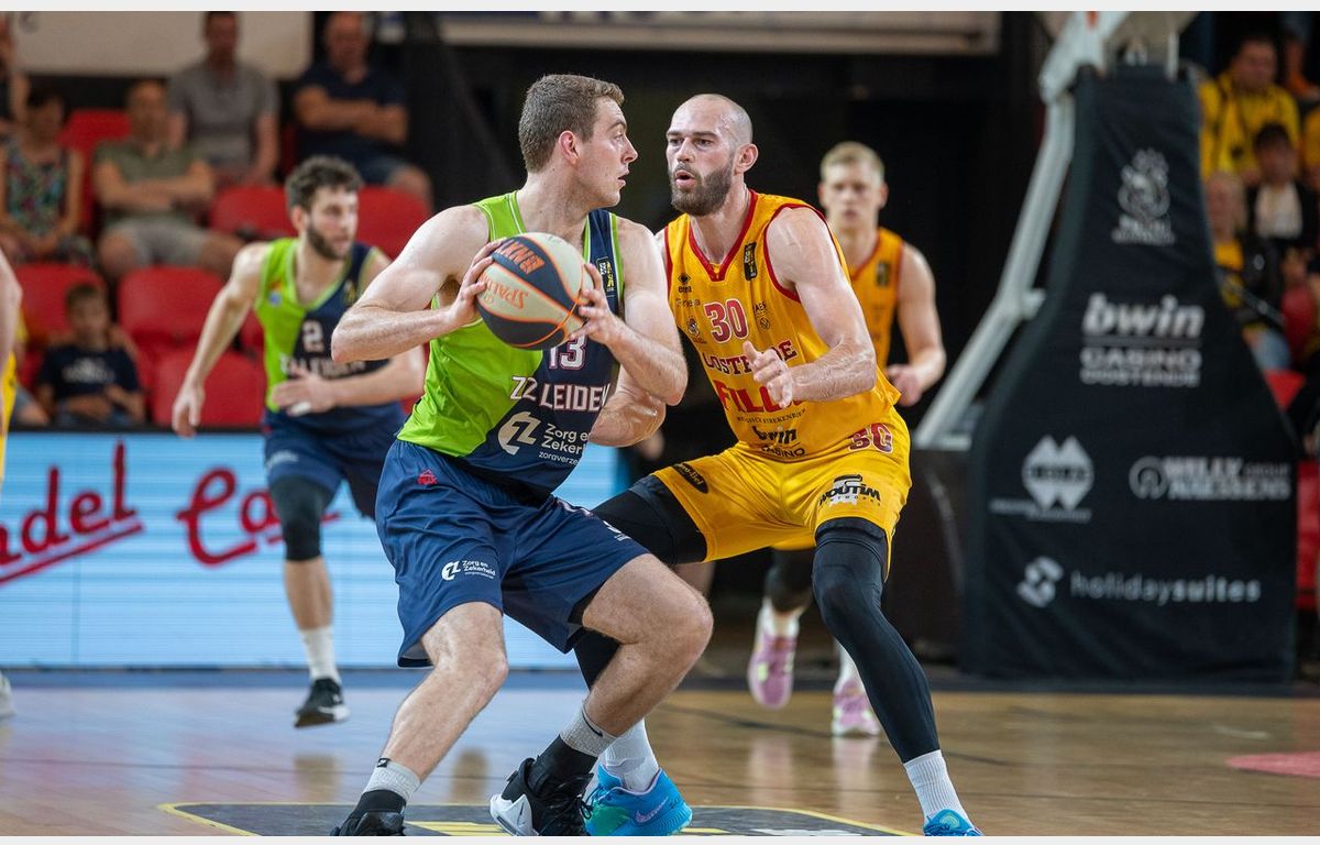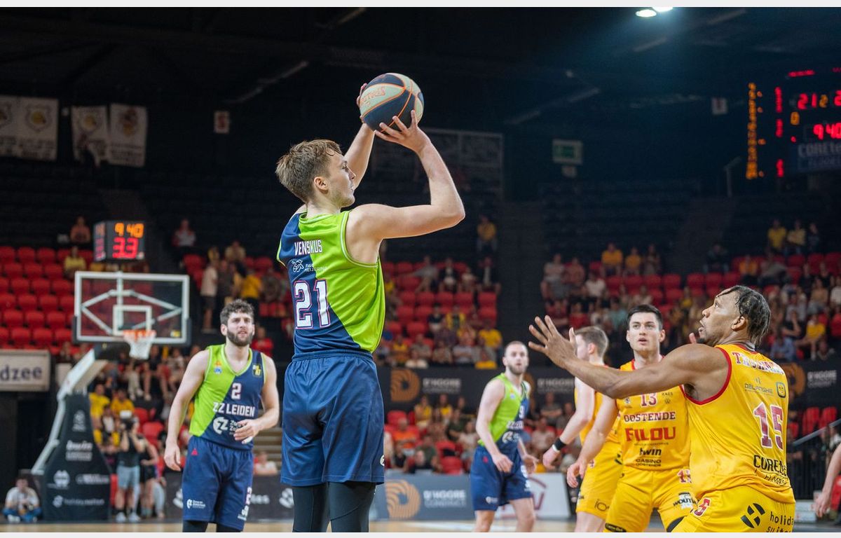 Zorg en Zekerheid Leiden is een stap dichterbij een derde titel gekomen. De regerend kampioen van de BNXT League zorgde voor een daverende verrassing door in de Belgische kustplaats te winnen van Filou Oostende. Na een ruststand van 41-44 werd het 66-79 voor de Leidse formatie. Komende zondag vindt om 15.00 uur de return in de Vijf Meihal plaats.