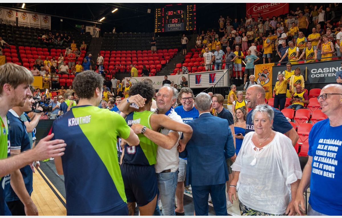 Na de nederlaag van afgelopen zondag in eigen huis, baalden de spelers van Zorg en Zekerheid Leiden wel even, want kampioen worden in eigen huis is natuurlijk veel leuker. Maar toch bleef de ploeg geloof houden in de titel. Waren in de nationale en BNXT play-offs immers niet alle uitwedstrijden gewonnen, terwijl het in de Vijf Meihal stukken moeilijker ging?