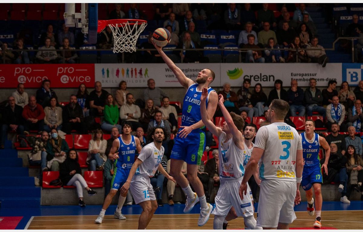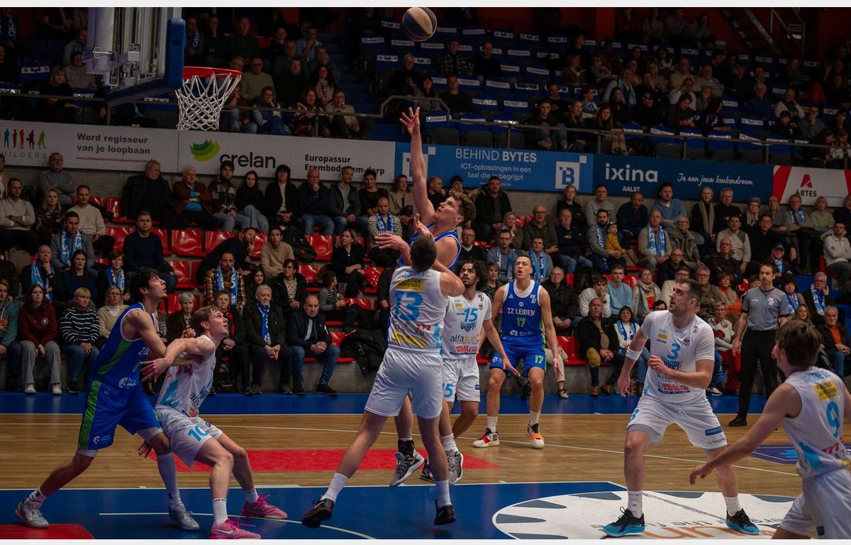 Zorg en Zekerheid Leiden is er vrijdagavond niet in geslaagd om bij Okapi Aalst de winst binnen te halen. Een matig eerste kwart zorgde al meteen voor een ruime achterstand. Na rust (41-27) kende de Leidse ploeg een sterke fase. Door een 0-18 run kwamen beide ploegen vlak voor het einde van het derde kwart op gelijke hoogte. Ook in het vierde kwart overkwam ZZ Leiden een achterstand van 8 punten om in de laatste minuut terug te komen tot 74-71. Verder kwam de Leidse ploeg niet: 80-71.