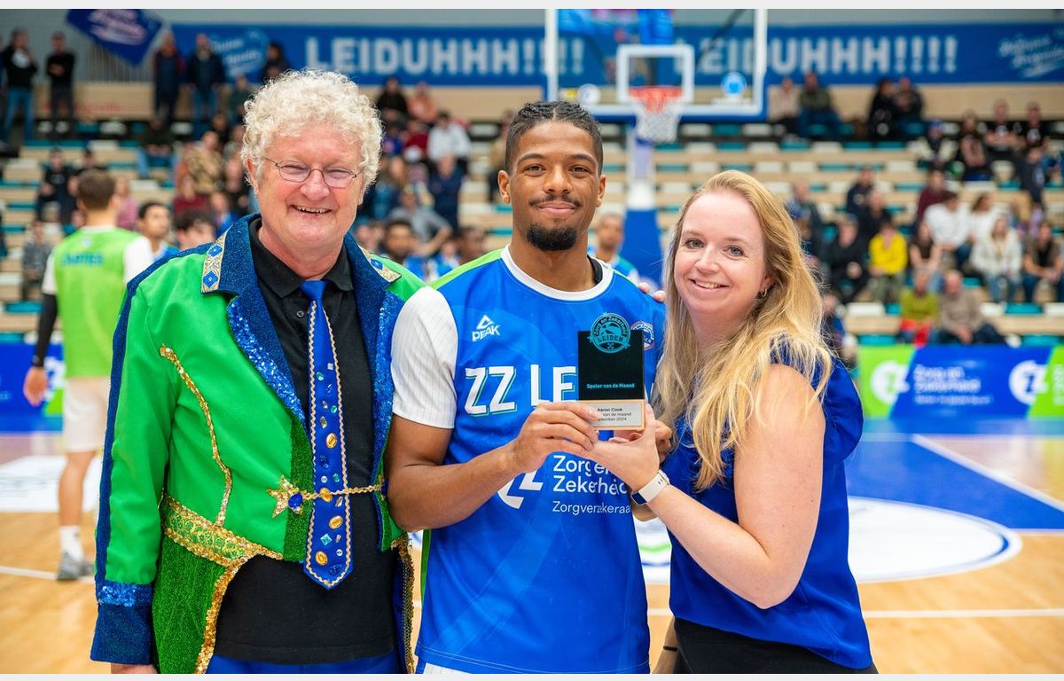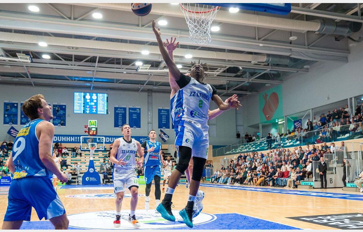 Zorg en Zekerheid Leiden heeft zaterdagavond de derde wedstrijd van dit seizoen in winst omgezet. Het Okapi Aalst van Eddy Casteels moest voor rust (47-27) een fiks aantal driepunters incasseren. Na de pauze kreeg ZZ Leiden wat meer weerwerk van Okapi Aalst te verduren, maar in gevaar kwam de overwinning zeer zeker niet: 79-67.