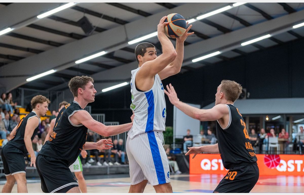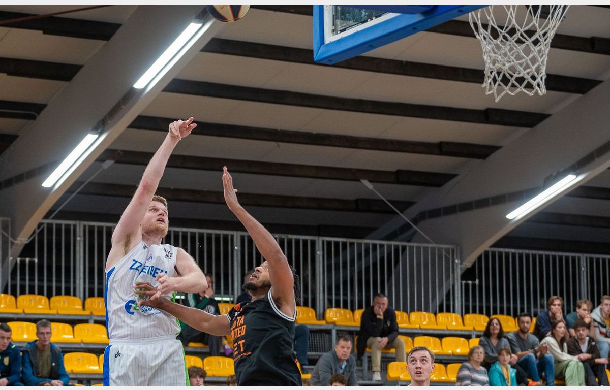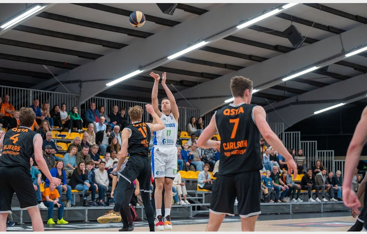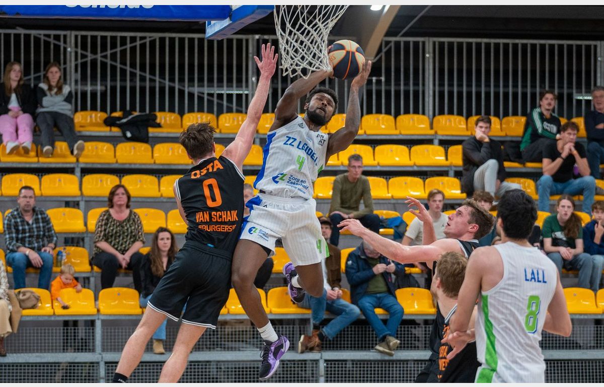 Zorg en Zekerheid Leiden heeft zondagmiddag de uitwedstrijd bij QSTA United in winst omgezet, maar wat maakte de ploeg het moeilijk voor zichzelf. Acht minuten voor tijd stond de Leidse ploeg 17 punten voor (50-67), maar daarna lukte er opeens weinig meer. QSTA United kwam terug tot op vier punten, maar uiteindelijk zorgde Jordan Davis voor de beslissende score. Aaron Cook bepaalde vanaf de lijn de eindstand op 71-76.