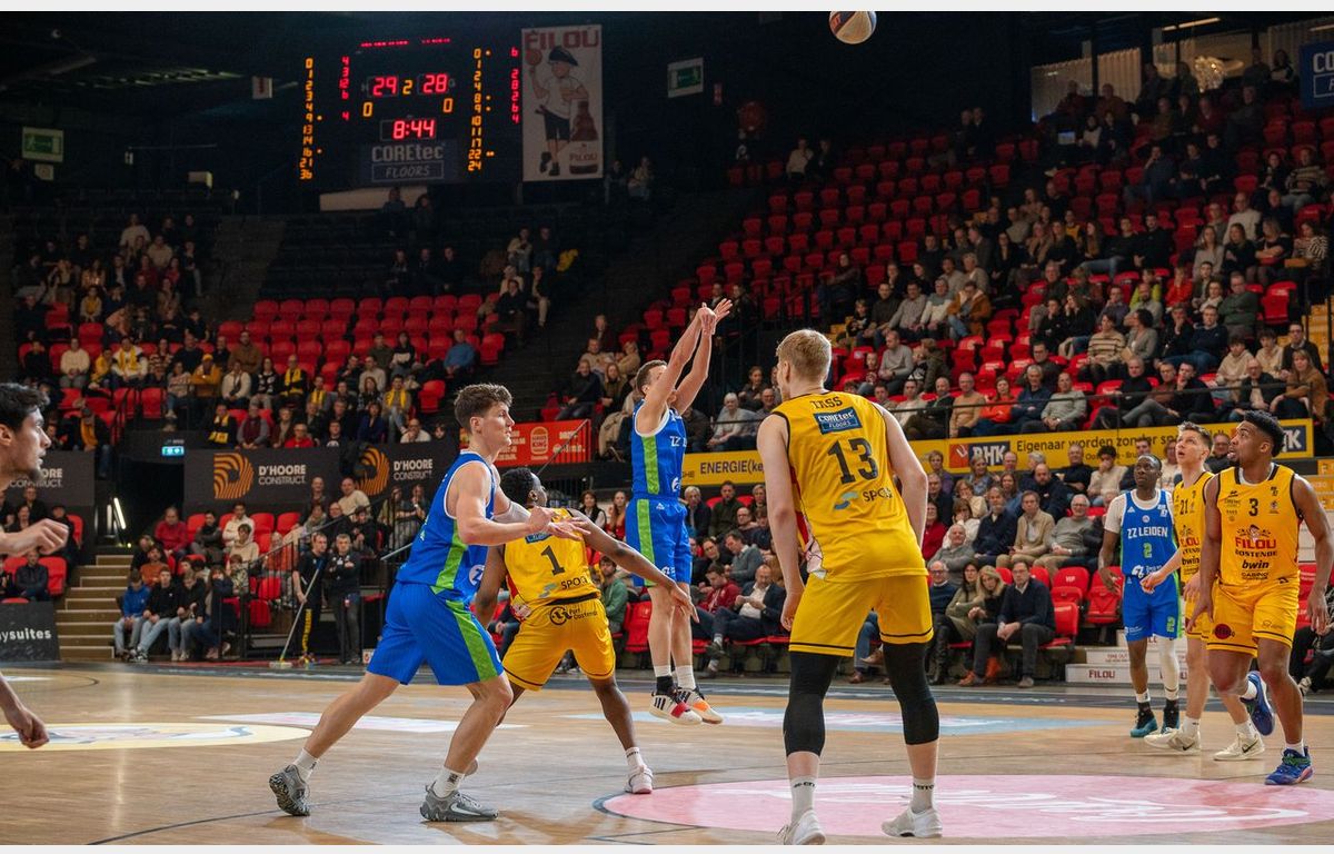 ZZ Leiden kende een goede start in Oostende. Na de openingsscore van Chase Audige (driepunter) kwam ZZ Leiden mede dankzij twee drietjes van Stan van den Elzen en een driepunter van Jordan Davis op een 7-11 voorsprong. De Leidse ploeg zag in de achtste minuut Filou Oostende op voorsprong komen, maar in de buzzer pakte Davis nog uit met een driepunter van net over de middenlijn voor 25-26.