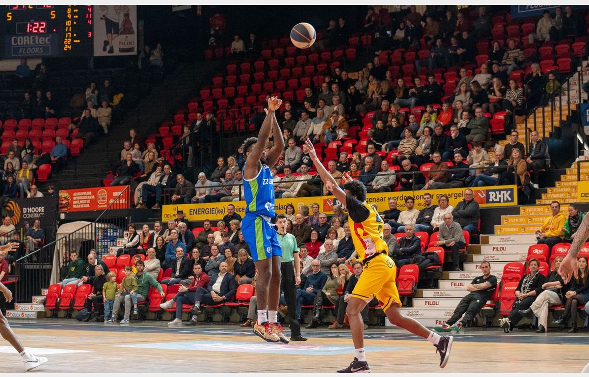 Als ZZ Leiden in de eerste vier minuten van het tweede kwart slechts één keer weet te scoren via Tajinder Lall, dan is het niet vreemd dat de thuisploeg de leiding overnam. De Amerikanen Devontae Shuler, Timothy Allen en Davion Mintz kregen genoeg steun van nieuwkomer E.J. Anosike. Toch bleef ZZ Leiden in de wedstrijd hangen. Dat kwam mede door driepunters van opnieuw Stan van den Elzen en Lucas Kruithof. Drie minuten voor rust stonden beide ploegen bij 40-40 weer naast elkaar. In het laatste deel voor de pauze moest ZZ Leiden de Belgische recordkampioen laten gaan: 53-44.