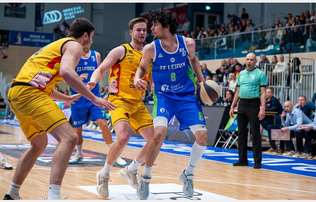 Zorg en Zekerheid Leiden heeft zaterdagavond in een volle hal een prachtige overwinning geboekt. Filou Oostende werd na een ruststand van 41-36 met 87-74 verslagen. Daarmee is de Belgische tegenstrever de koppositie in de BNXT League kwijtgeraakt. Voor Marijn Ververs was zijn terugkeer in Leiden dus geen succes. Niettemin kreeg hij een mooi eerbetoon voor aanvang van het duel.