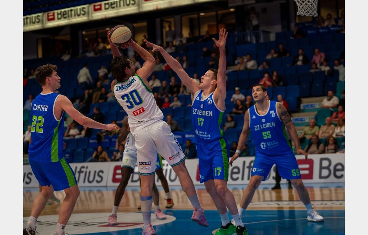 Halverwege het eerste kwart sloeg ZZ Leiden van 7-6 achter een gaatje naar 7-16, onder meer via driepunters van Schaftenaar en Lucas Kruithof. Het zorgde er in elk geval voor dat er niet alleen beter begonnen was aan de wedstrijd, maar ook dat het eerste kwart, mede dankzij een zoneverdediging, met 20-25 werd gewonnen.