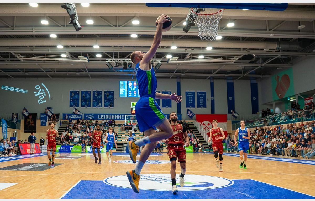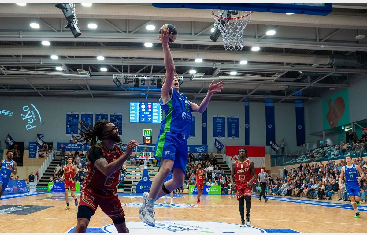 Jordan Davis zat lekker in zijn vel en was in de eerste helft aanvallend het gevaarlijkste wapen van de Leidse formatie. Bij rust stonden er al 17 punten achter zijn naam. Alleen Brad Greene kon nog enigszins volgen met 8 punten. Bij Windrose Giants Antwerp gaf Elias Lasisi een ware schotclinic in de eerste helft. De Belgische international schoot voor rust vijf van zijn zes driepuntspogingen raak.