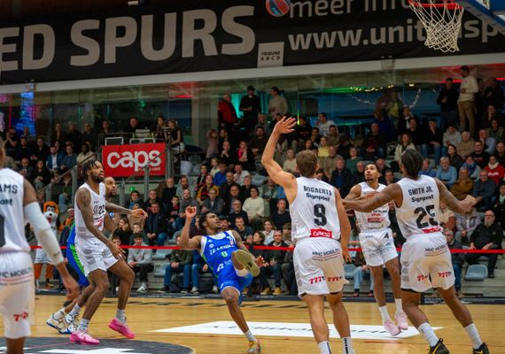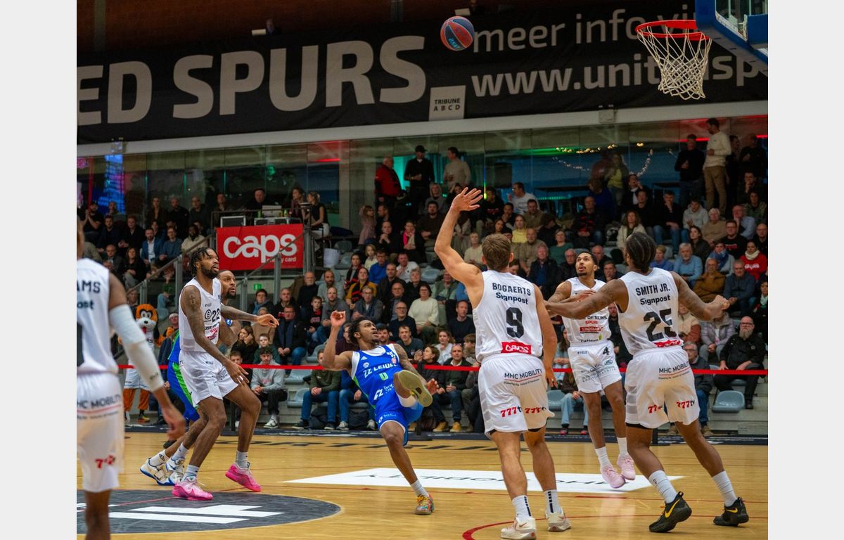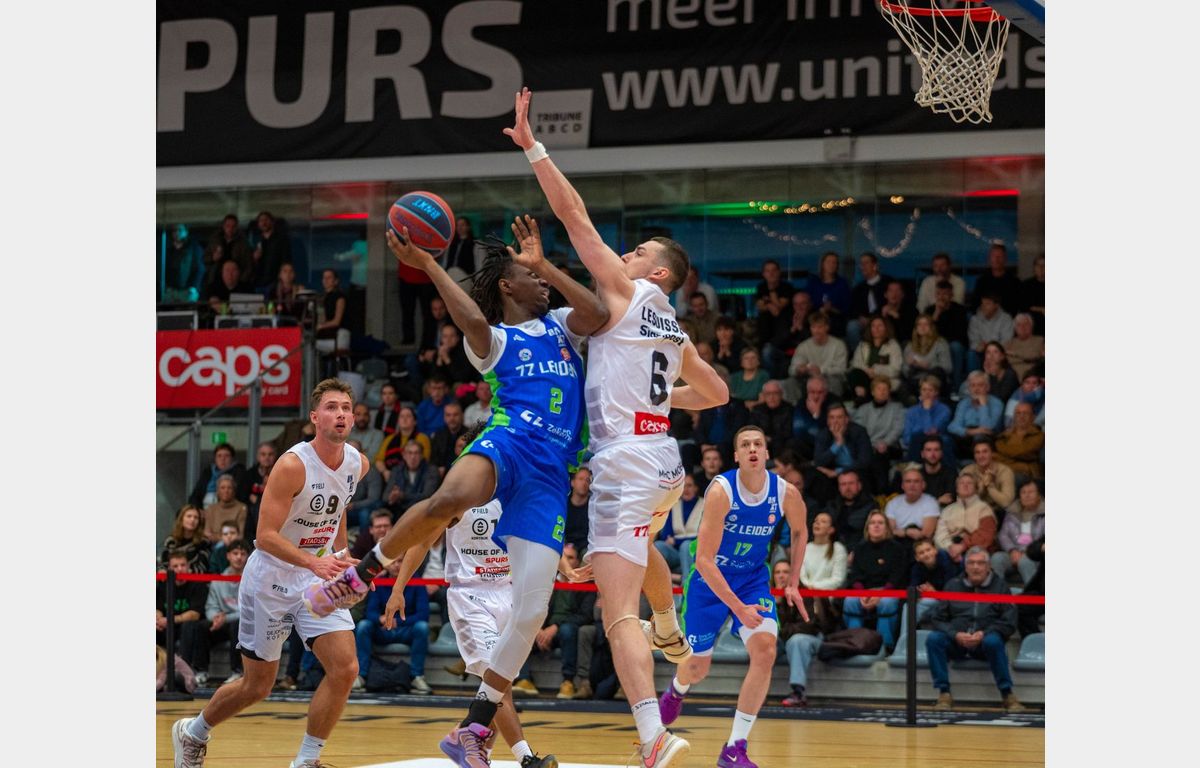 Zorg en Zekerheid Leiden heeft tegen House of Talents Spurs Kortrijk de tweede nederlaag in de BNXT League te pakken en dat was helemaal niet nodig geweest. Voor rust zag de Leidse ploeg een voorsprong van 13 punten smelten naar één punt en in het derde kwart werd een voorsprong van acht punten ook niet over de finish getrokken. Dubieus punt was wel de onsportieve – en vijfde – fout van Javian McCollum nadat hij op twee minuten van het einde in de break tot drie keer toe met persoonlijke fouten te kampen had zonder dat daarvoor gefloten werd. Zelfs de Belgische commentatoren spraken daar schande van.